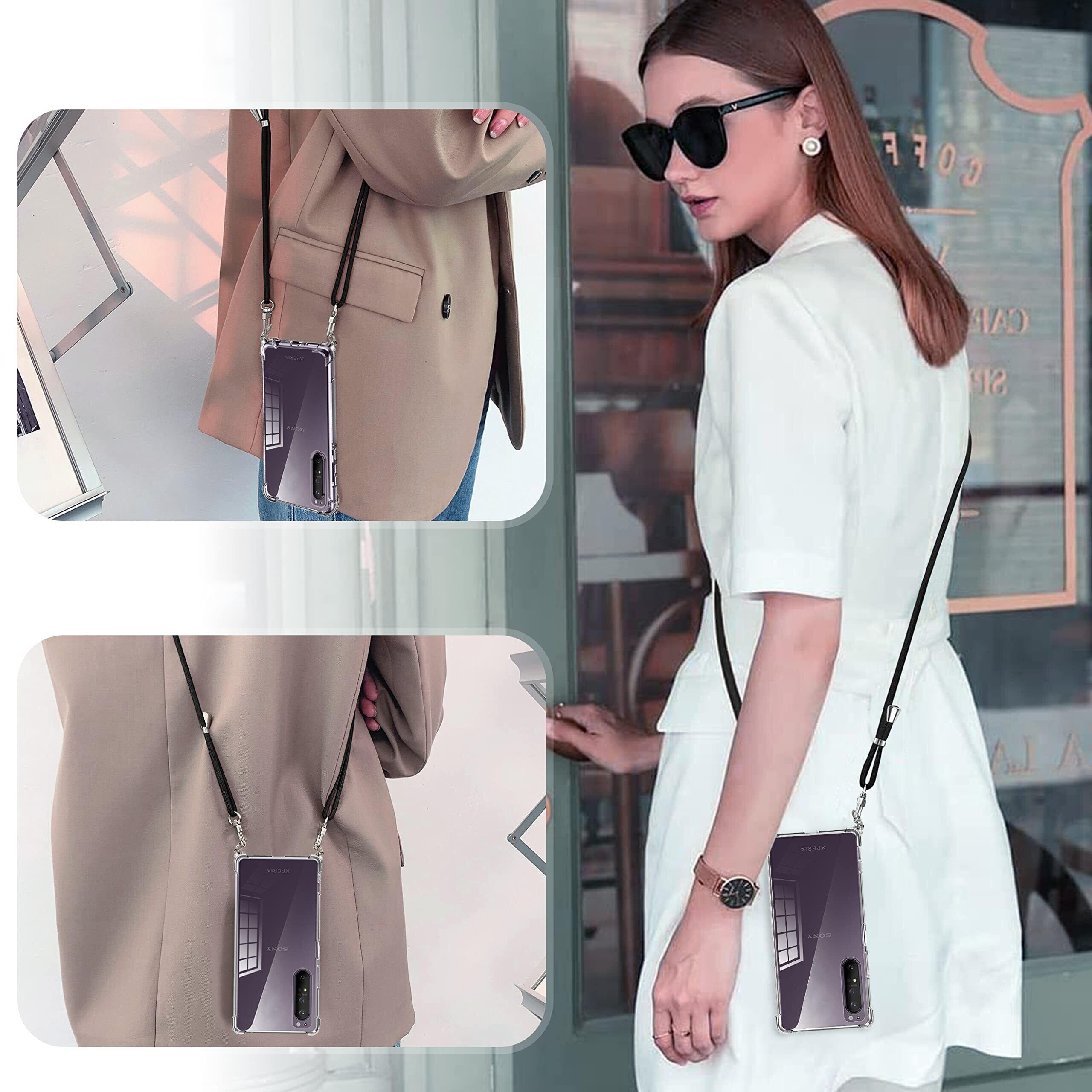 Sony Xperia 1 II ケース クリア ショルダー Xperia 1 II SO-51A スマホケース エクスペリア 1II カバー 肩掛け 斜めかけ SOG01 ショルダー クリア ケース 縄掛け 透明 TPU ストラップ付き 薄型軽量 1.5MM 取り外し可能 電波影響なし 指紋防止 落下防止 Qi急速充電対応 柔軟で変形しない