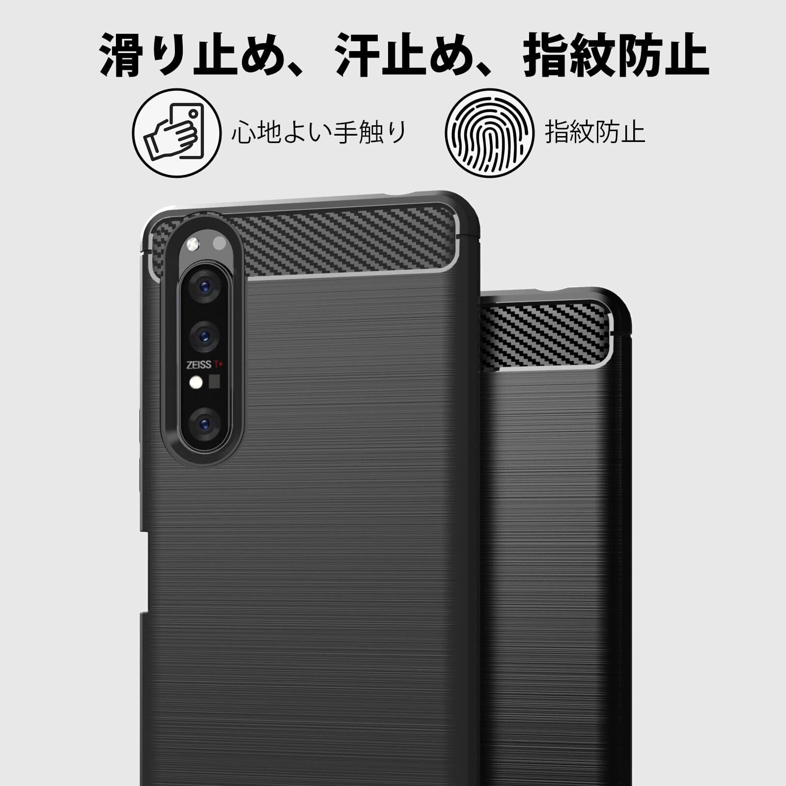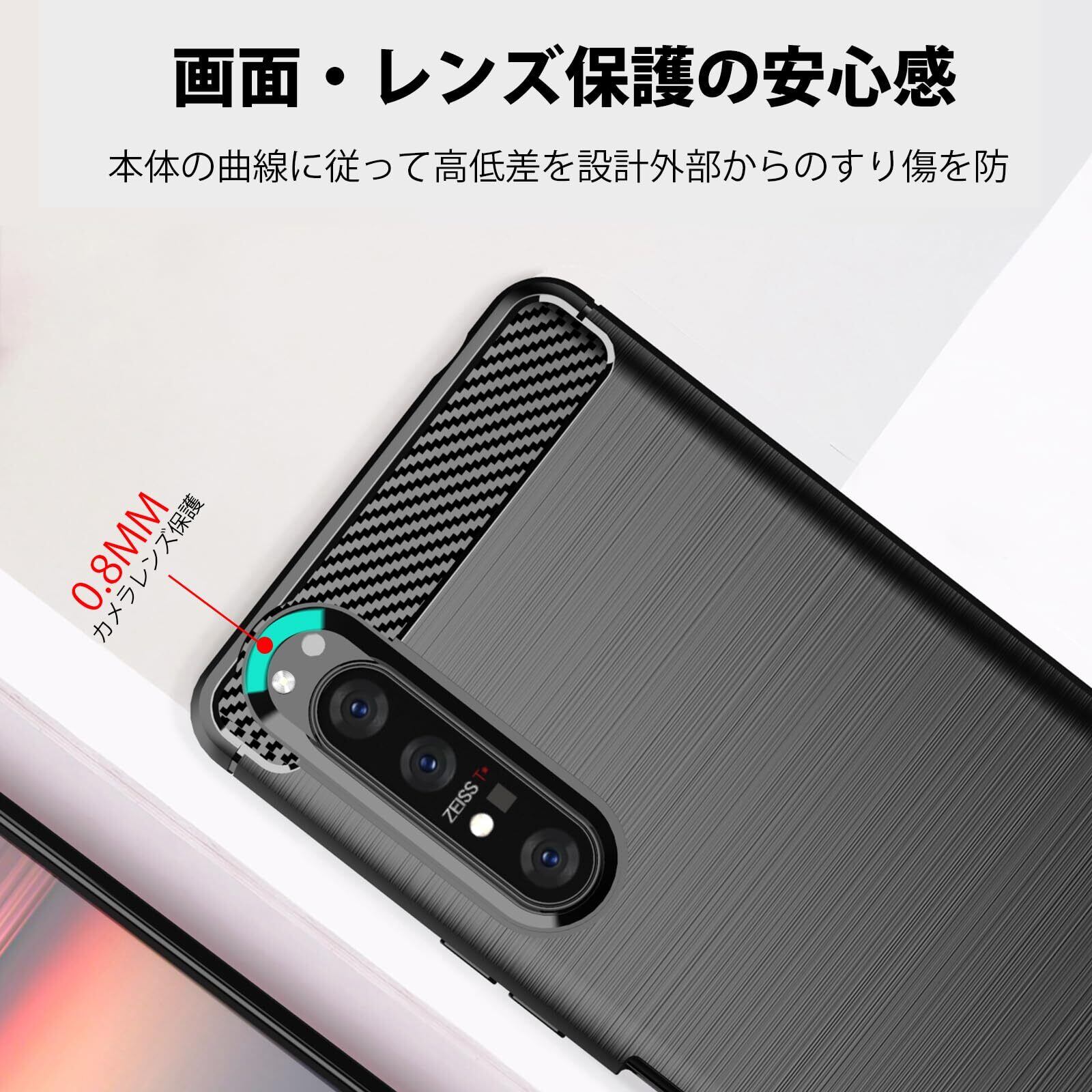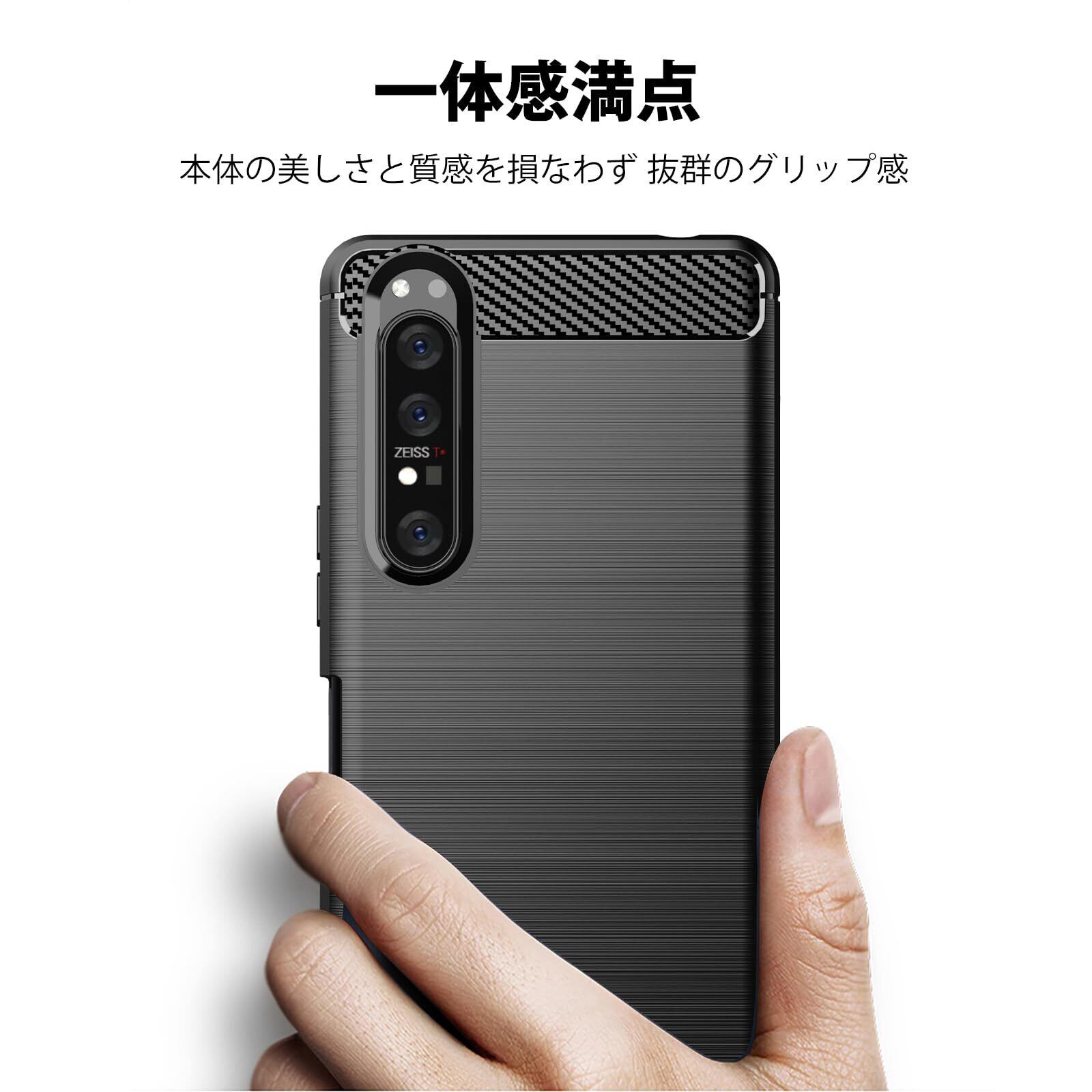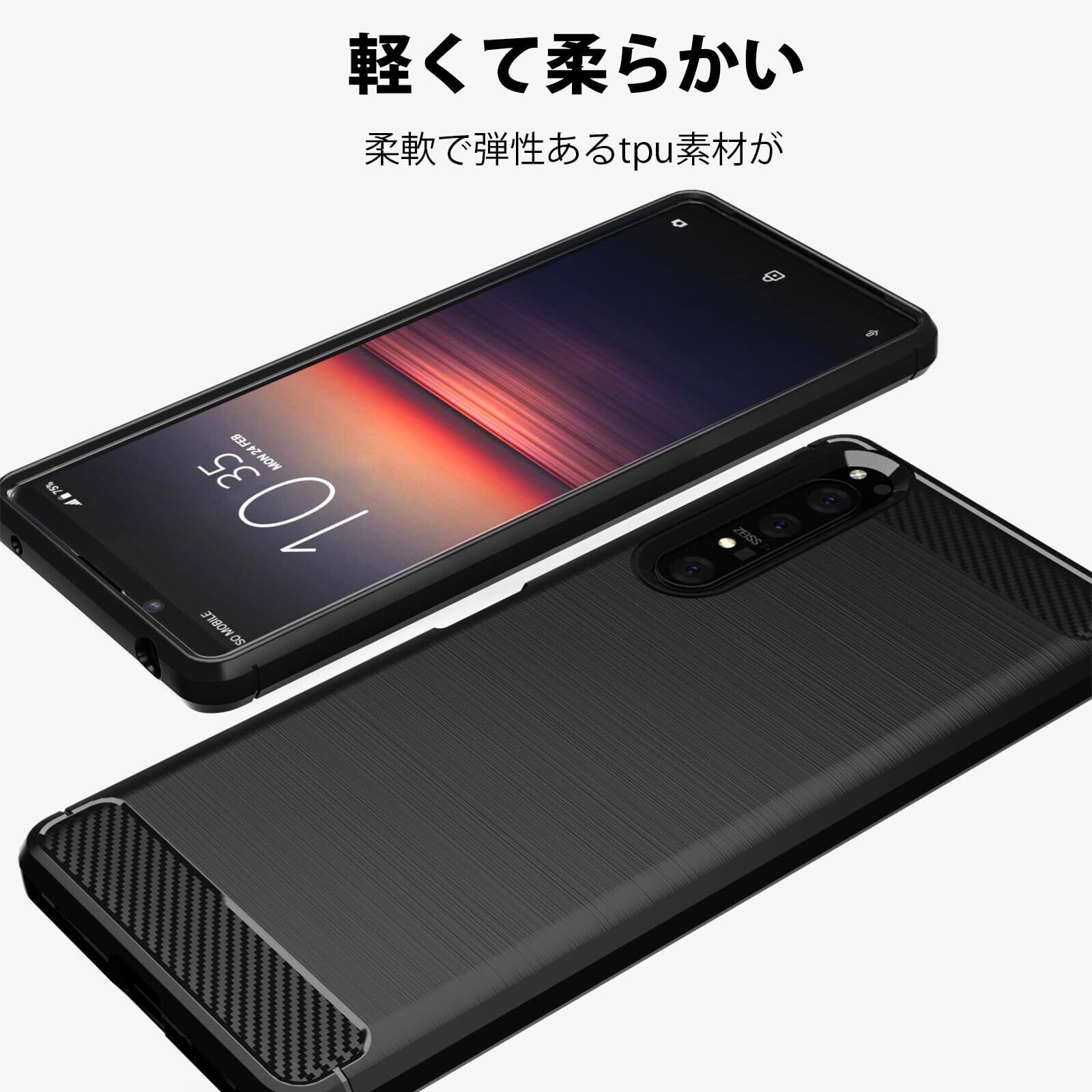 Xperia 1 II 用ケース 耐衝撃 TPU 薄型 軽量 ソフト エクスペリア1 II SO-51A/SOG01 用カバー カーボン風 デザイン ワイヤレス充電 角保護強化 柔らかい 耐久 指紋防止 黄変防止 滑り止め 人気 保護カバー ブラック JP4-15