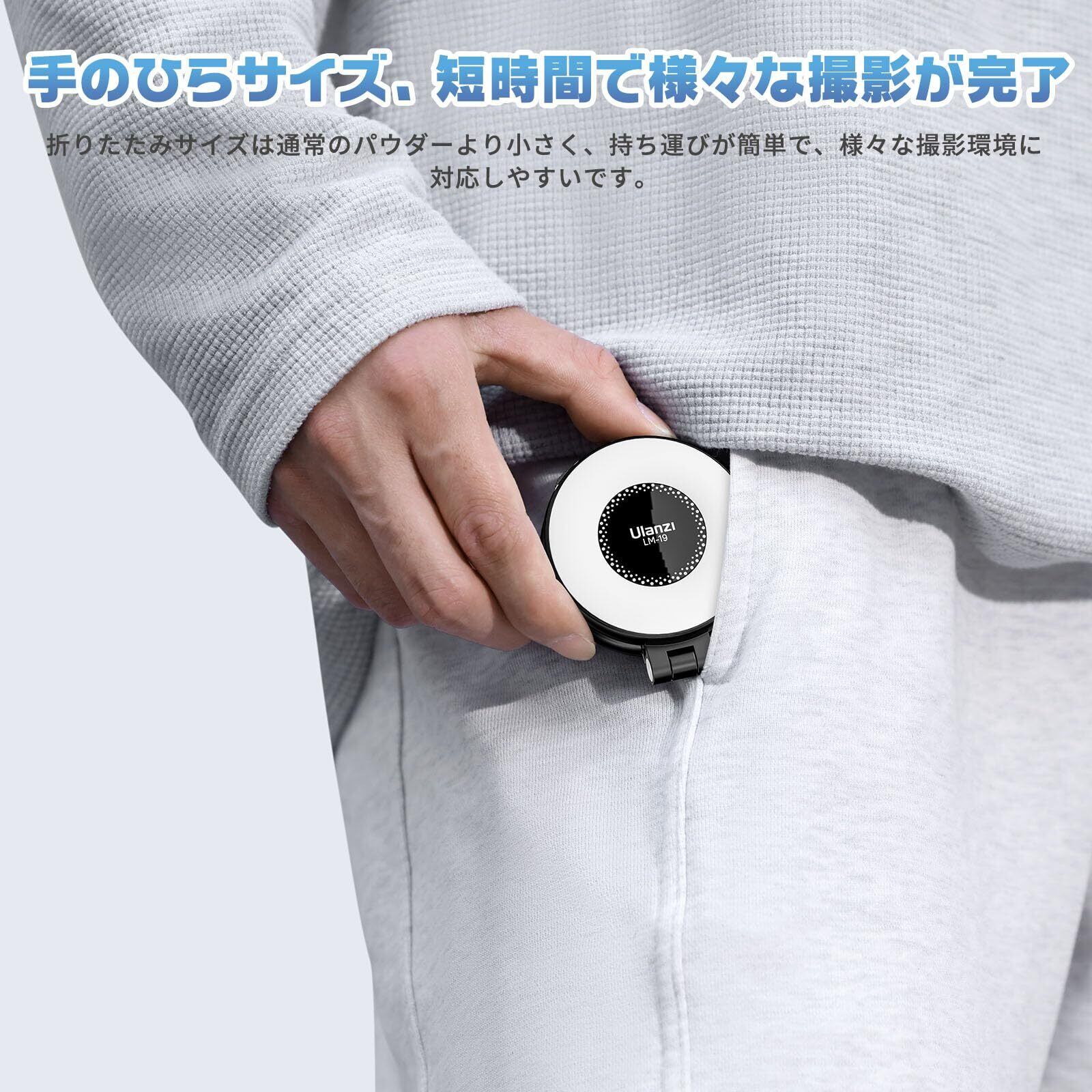 【ちょうどいいサイズ・簡単に角度調節】ビデオライトのサイズは4*3.5*2.5 cm、重さ約63g、手のひらよりも小さくて軽量です。ポケットやカバンに入れて持ち運び便利、どこでも自撮りや写真を撮て素晴らしい瞬間を記録します。また、210°折りたたむことができ、お好みの角度しっかりロックして、自分の好きな映りを実現できます。面倒な組立ては不要、誰でも楽に楽しめるリングライトです。