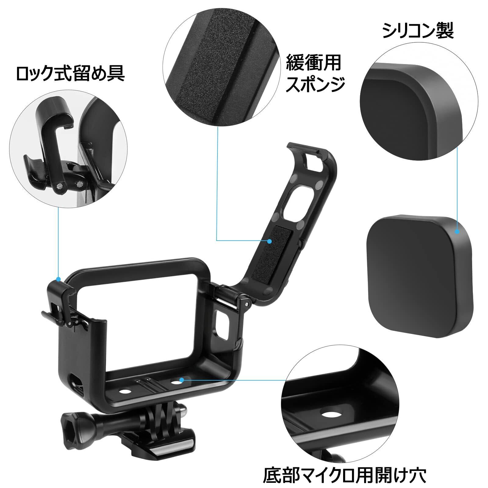 【人気】【Taisioner】GoPro HERO12/11/10/9専用 保護フレーム+シリコンキャップ+充電開口サイドドア 上部開閉型 第2世代 充電可能 マイク・ディスプレイ・ライト用装着位置付き(一つ) Taisionerのストアを表示
