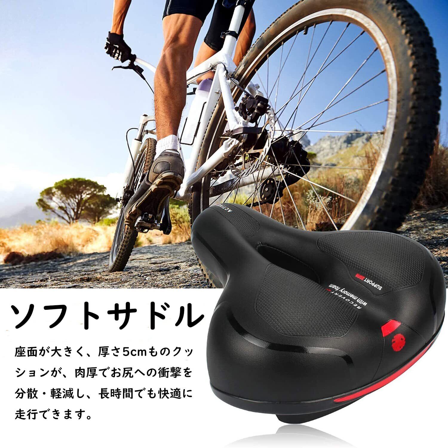 【ソフトサドル】「元々自転車に付いているサドルでは、お尻が痛くなって長時間乗ることができない…」というお客様の声に応じて、超極厚ソフトクッション内蔵された自転車サドルを仕上げました。座面が大きく、厚さ5cmものクッションが、肉厚でお尻への衝撃を分散・軽減し、長時間でも快適に走行できます。