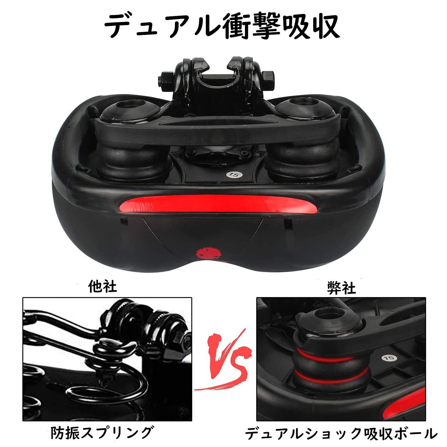 【デュアル衝撃吸収】自転車サドルは二重構造のダブルスプリング仕様で高いクッション性を持ち、より強靭性や柔軟性あり、悪路の振動や疲労を軽減されます。マウンテンバイクに装着して、未舗装路を走行する際に路面の凹凸による衝撃を吸収しながらスムーズな走行できます。