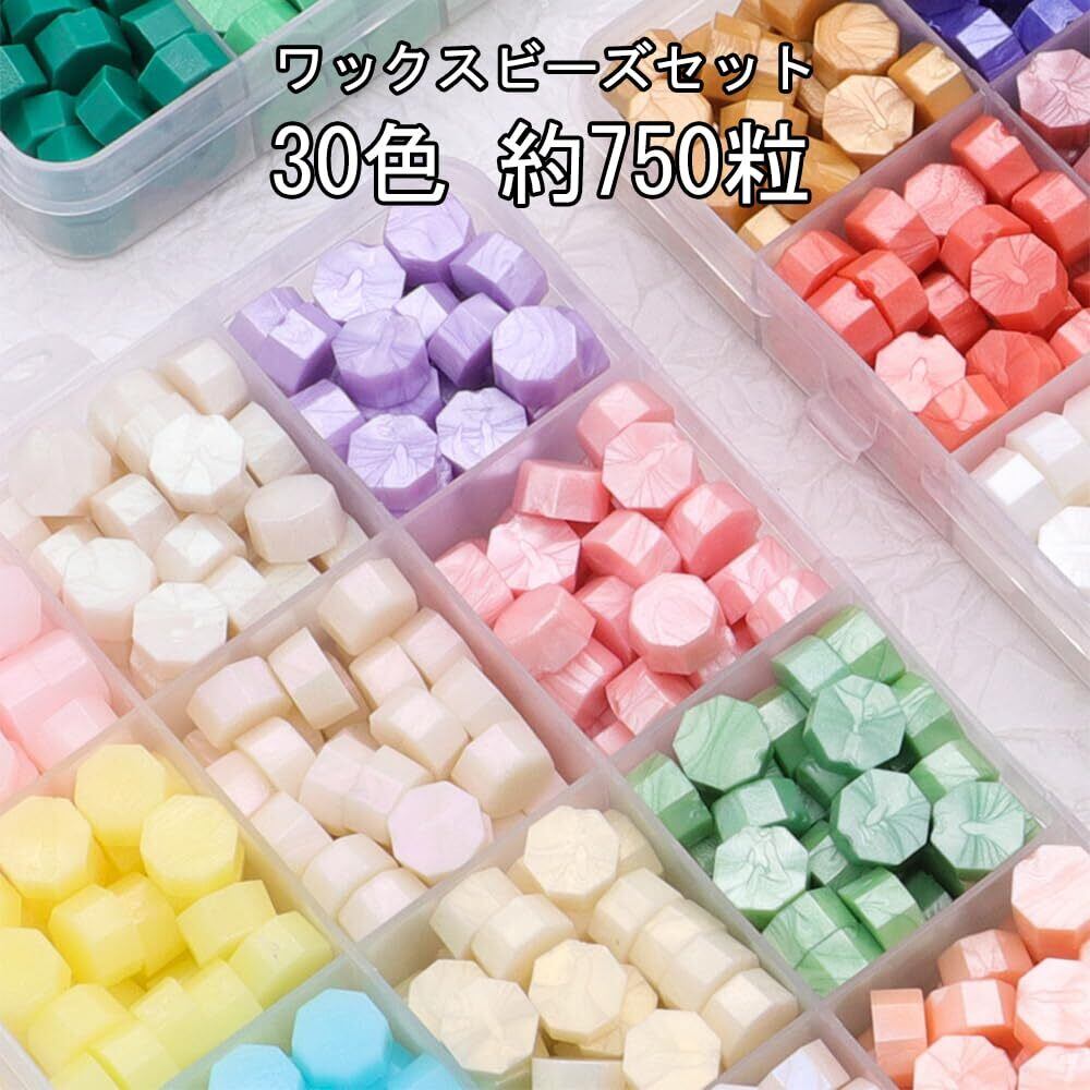 OIENNI シーリングワックス ワックスビーズセット 30色 約750粒 封蝋 シーリングスタンプ用ワックス 補充用 収納ケース付き (ワックスビーズセットXH)