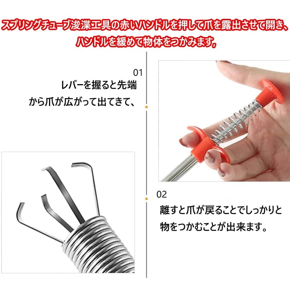 【操作も簡単】スプリングチューブ浚渫工具の赤いハンドルを押して爪を露出させて開き、ハンドルを緩めて物体をつかみます,時間と労力を節約し、操作が簡単です。