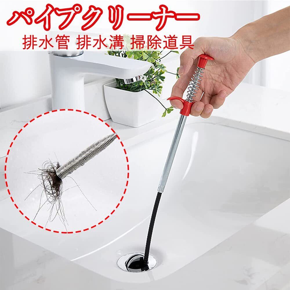 【細長い】パイプクリーナー 長さ160 cm、長くて細い構造で、狭い所でも心配なく清潔できます。柔軟で折り曲げ可能な巻き上げ式スプリング付きケーブル,下水管に簡単に挿入して破片を取り除き、排水管のブロックを解除できます。
