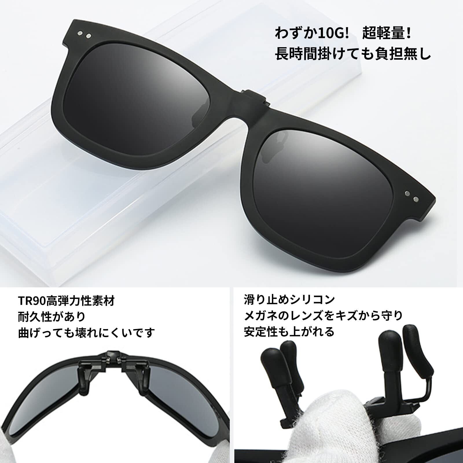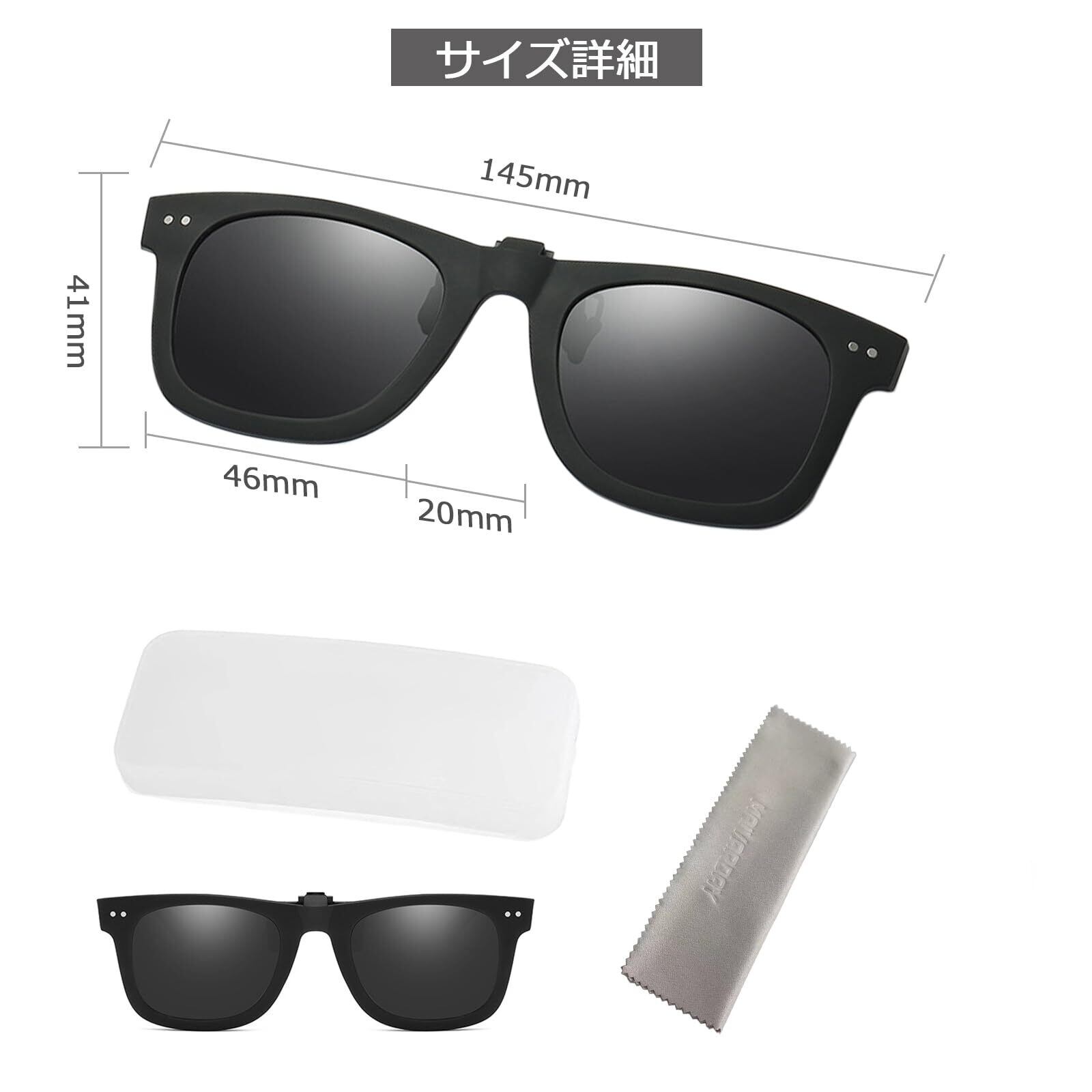 【メガネ着用用サングラス】クリップをメガネにクリップで留めて、着用後でもサングラスを跳ね上げることができます。 UV保護機能付きのクリップオンサングラス。 ほとんどのメガネに適しています。