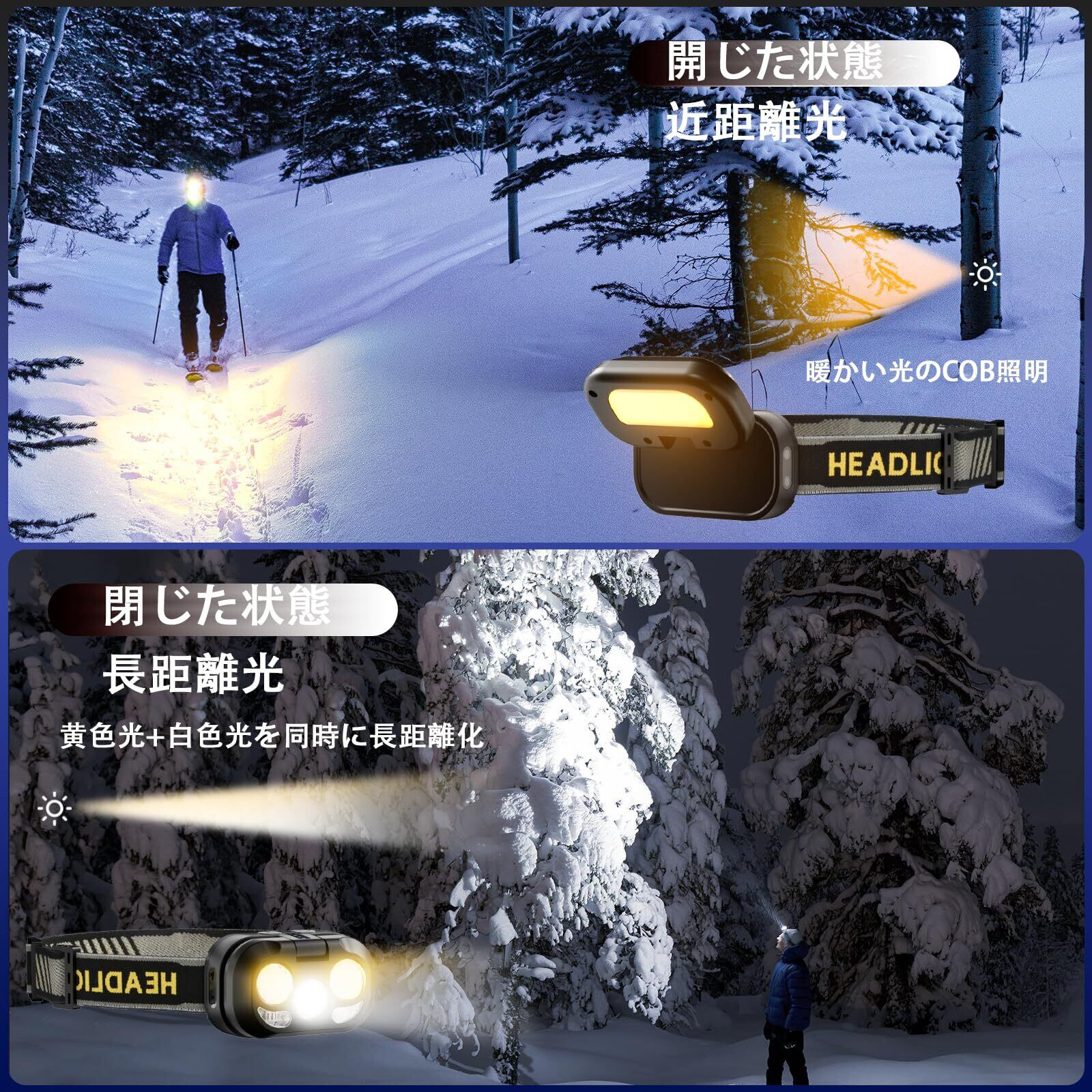 【業界新登場 5色切替】ヘッドライト USB充電式 LED ヘッドライト 釣り ヘッドランプ 明るさ 青&赤SOS切替ライト センサー搭載 LEDランタン COB作業ライト 8モード 5倍高輝度アウトドアヘッドランプ 280°広角照明 集光 実用点灯35時間 IPX8防水 アウトドア 防災 読書 散歩 警備 工事 キャンプ 登山 探検 車の修復 応急 SOS遭難信号【単品】