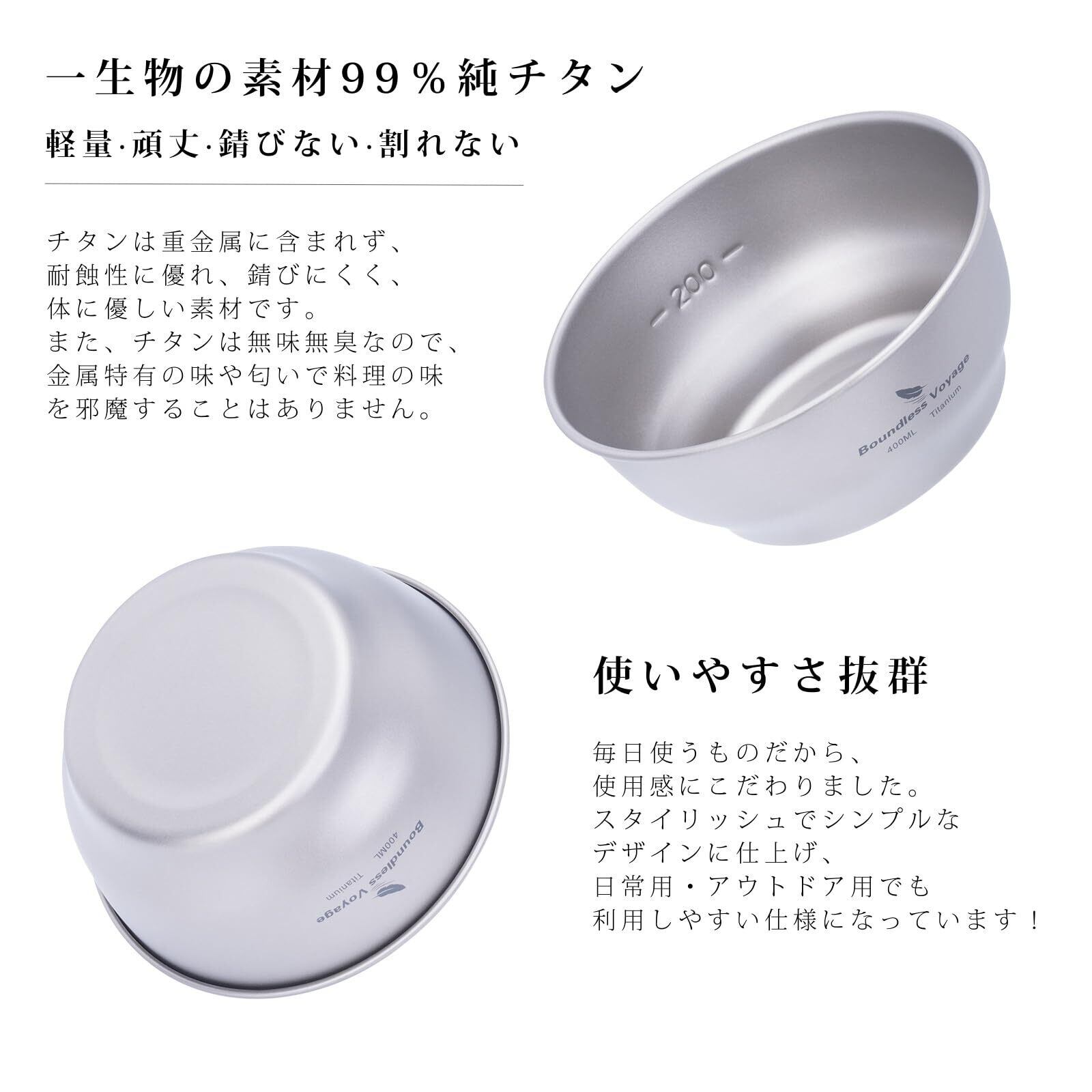 Boundless Voyage チタン ボウル 茶碗 鉢 皿 シングルレイヤ 割れない 錆びない 超軽量 サラダボウル デザート チタン食器 アウトドア キャンプ 自宅