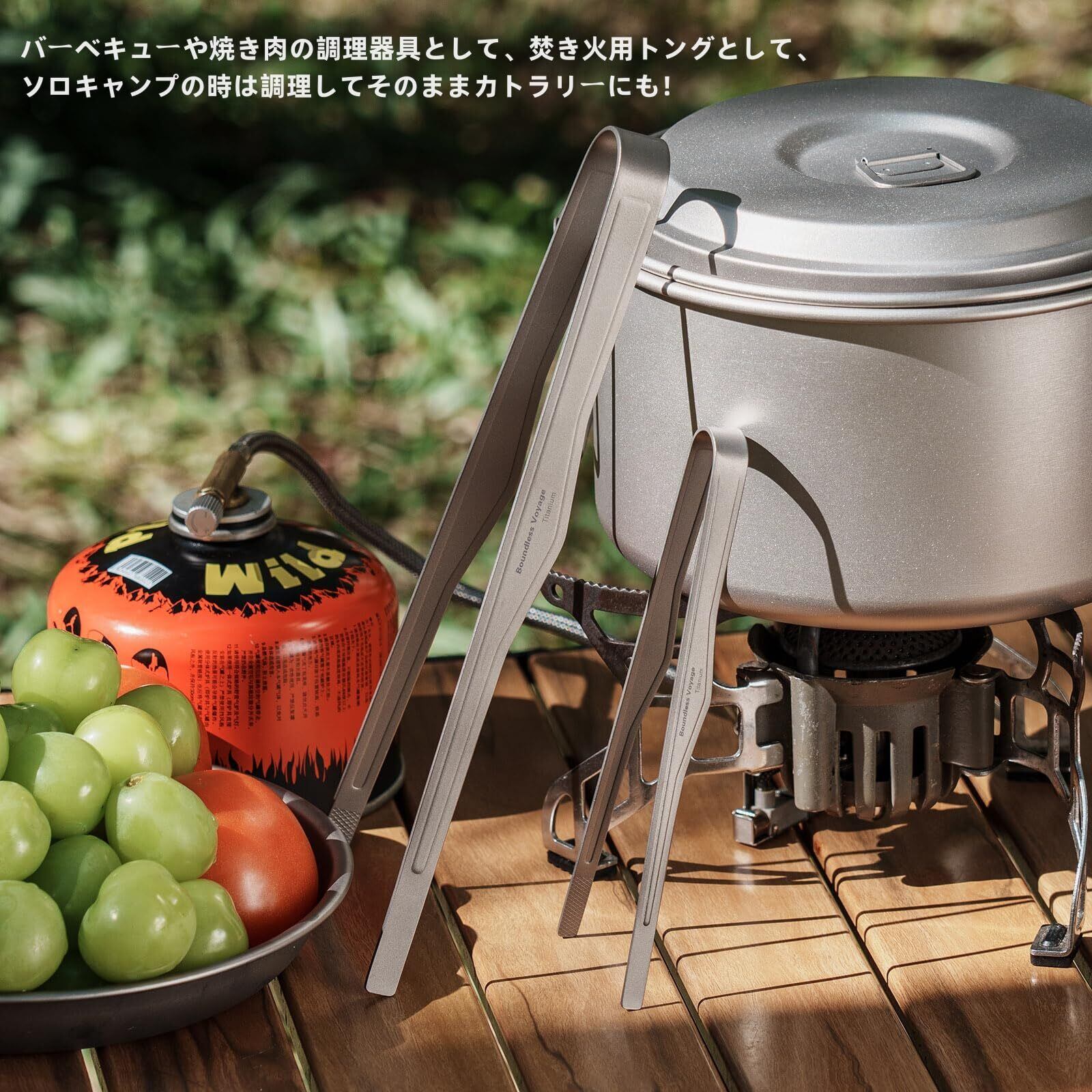 【熱に強いチタン製】 :耐熱性の高く錆びにくいチタン製で、焚き火料理にも安心して使用可能!焼き肉や揚げ物、茹でた食材を取り出すときにも便利に使えます。