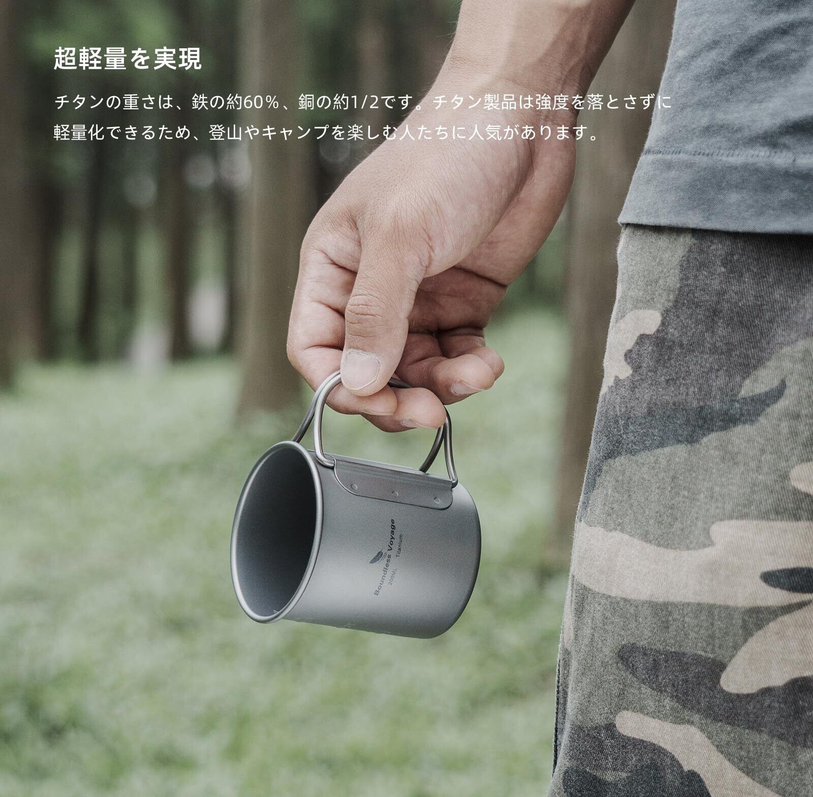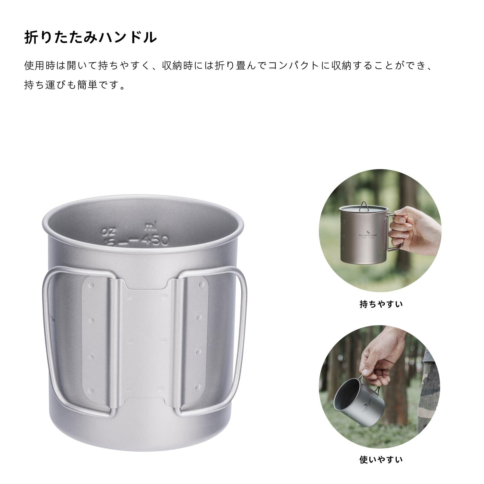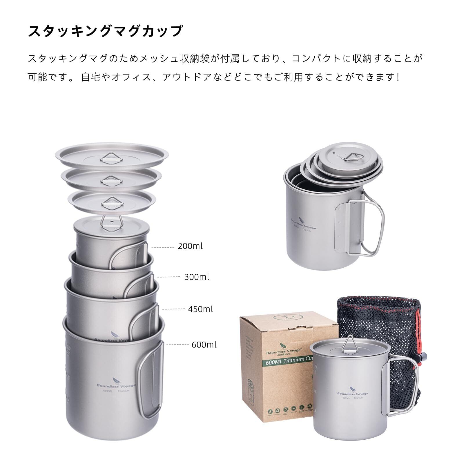 【特価処分】Boundless Voyage チタンマグカップ シングルマグ 200ml 蓋付き 軽量 頑丈 直火 マグカップ 折りたたみハンドル アウトドア クッカー コッヘル 調理器具 ソロキャンプ マグカップ 登山 コップ アウトドア キャンプ用品 Ti3033D (200ml シングルカップ)