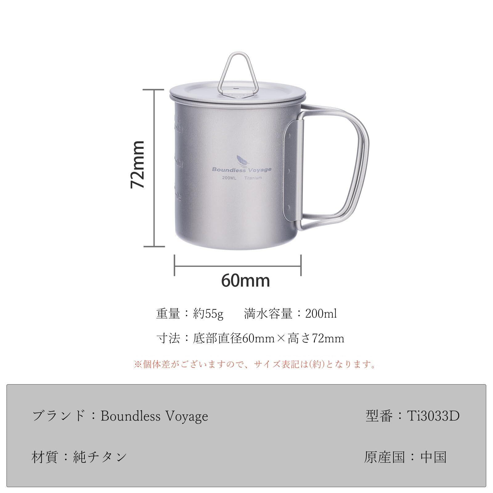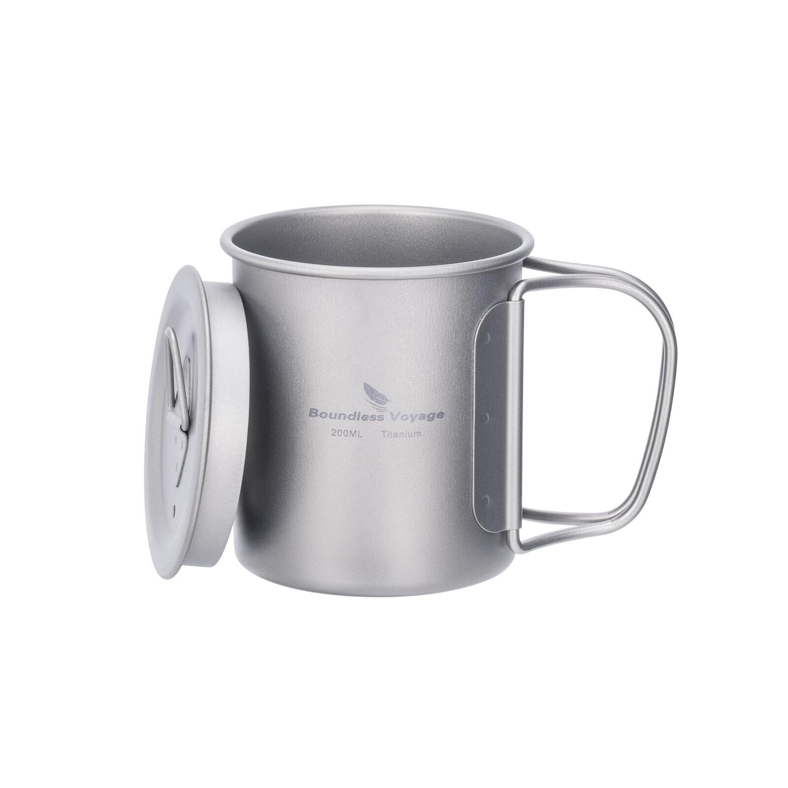 Boundless Voyage チタンマグカップ シングルマグ 200ml 蓋付き 軽量 頑丈 直火 マグカップ 折りたたみハンドル アウトドア クッカー コッヘル 調理器具 ソロキャンプ マグカップ 登山 コップ アウトドア キャンプ用品 Ti3033D (200ml シングルカップ)