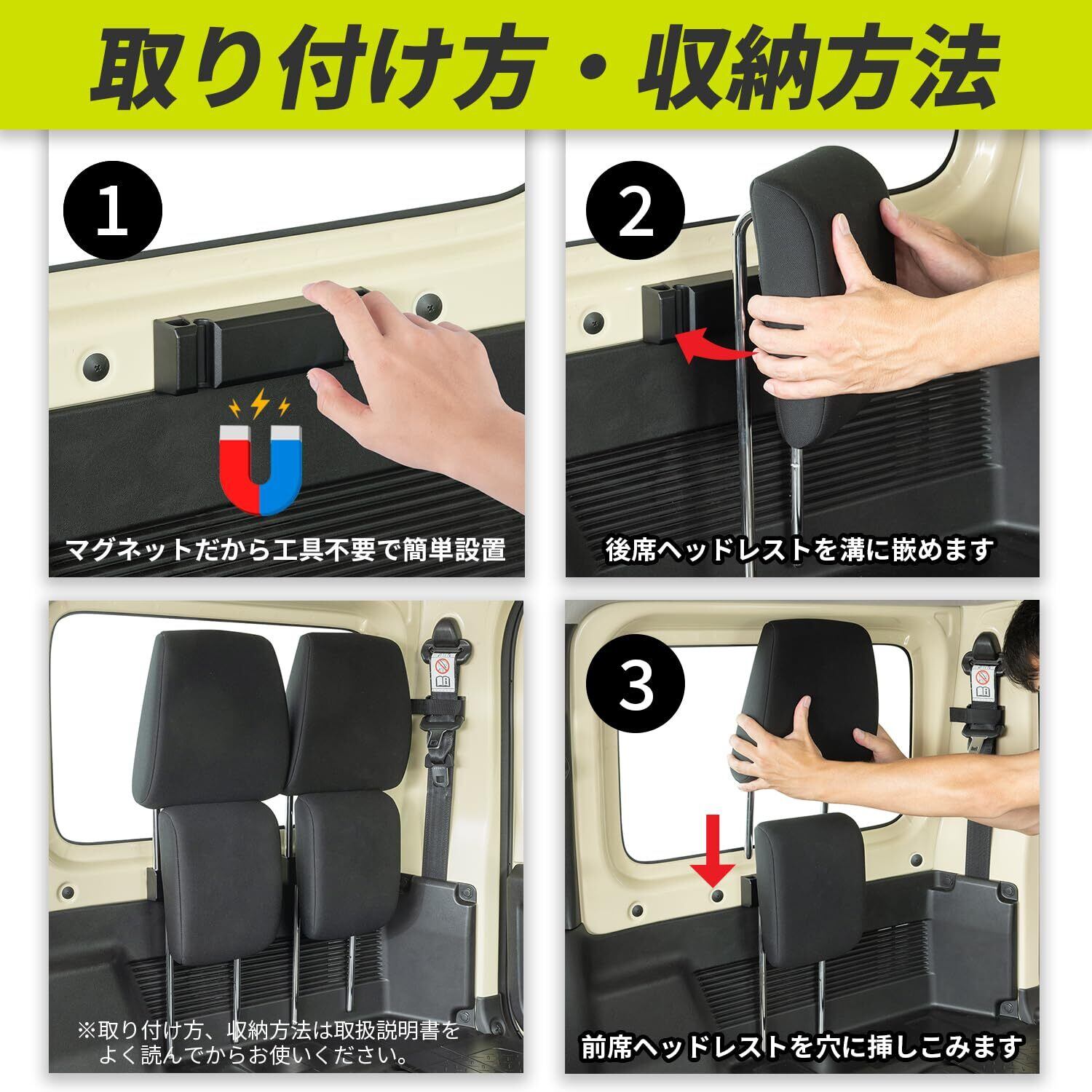 ●スズキ・ジムニー専用のヘッドレストを収納するホルダーです。