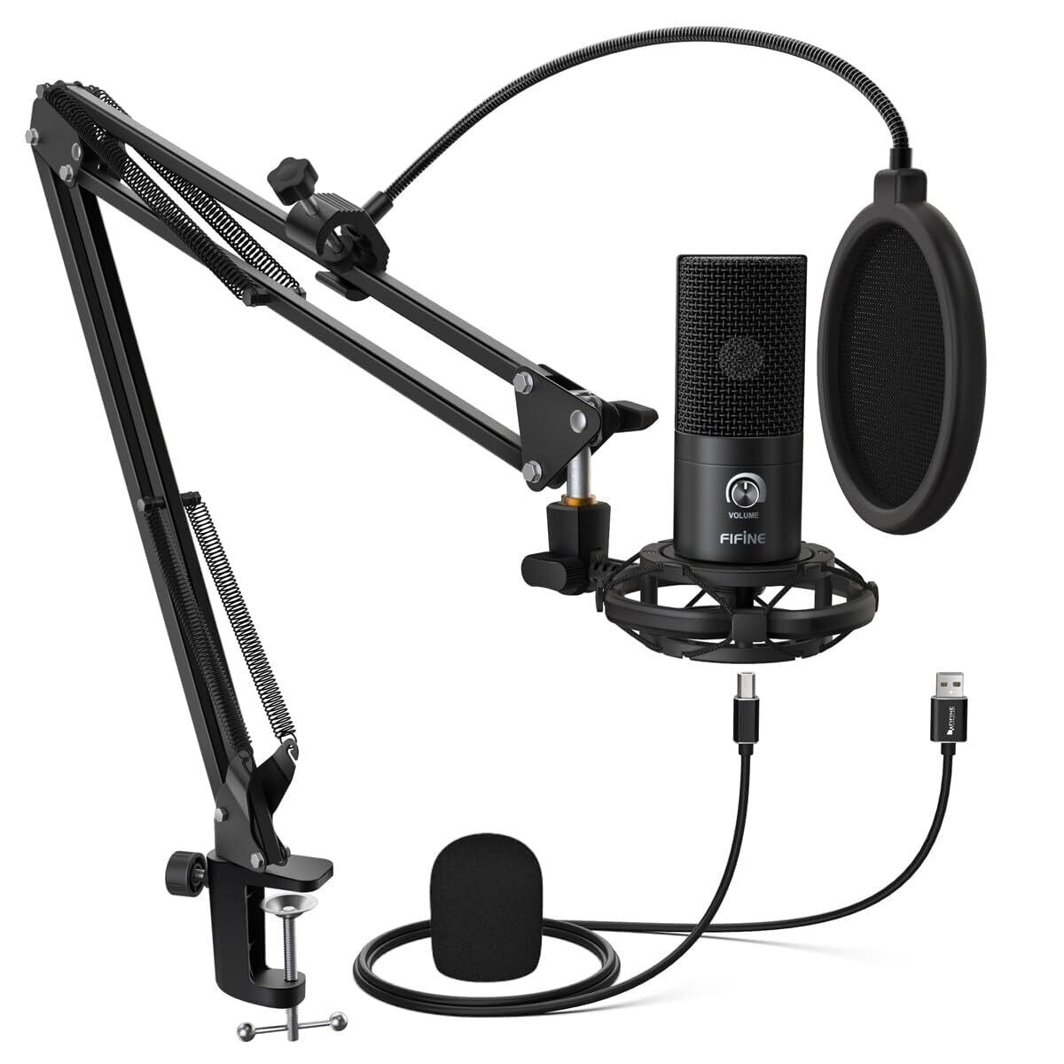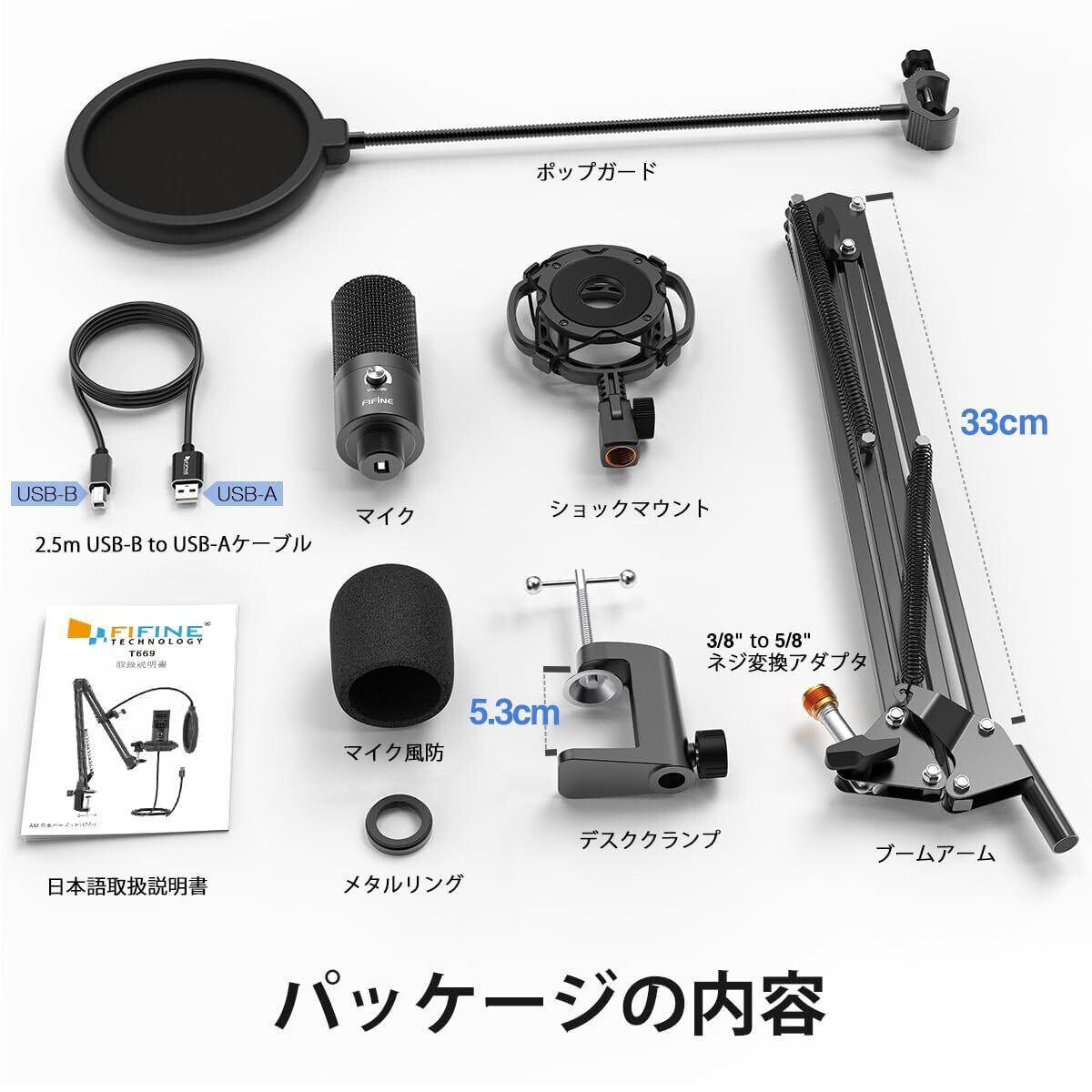 FIFINE USBマイクセット コンデンサーマイク ゲーミングマイク 単一指向性 アームスタンド付き(三脚スタンドなし) ポップガード付き 配信用マイク ABタイプ USBケーブル PC用 Skype 録音 ゲーミング ライブ配信 ゲーム実況 在宅勤務 Windows Mac PS4対応 適格請求書発行可 新T669