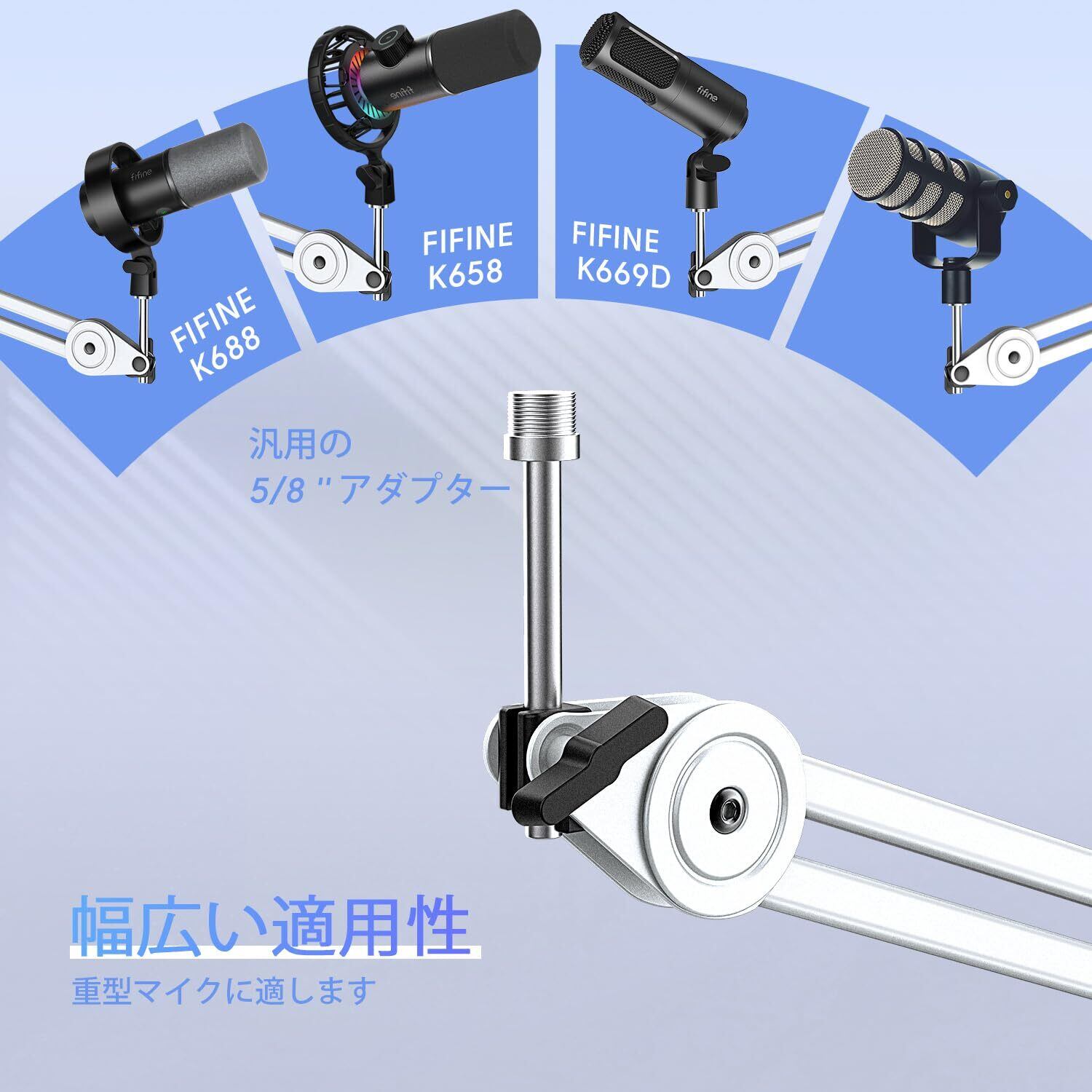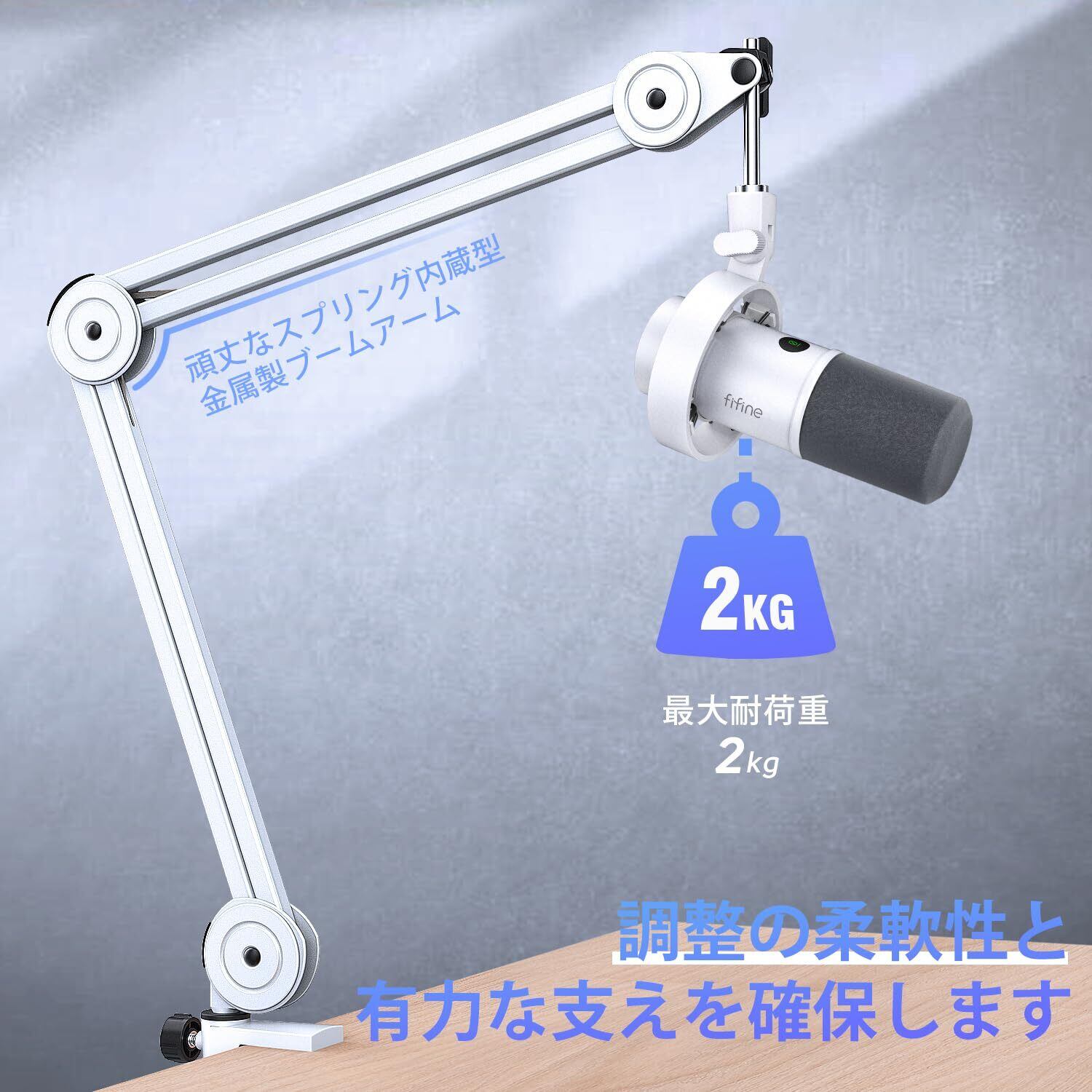 FIFINE マイクブームアーム マイクアーム 耐荷重2kg 卓上マイクスタンド 角度調節可能 クランプ式固定 伸縮 金属製 折り畳み式 ゲーム実況 配信 ライブ カラオケ 収録 在宅ワーク ゲーミング コンデンサーマイク用 白 BM63W