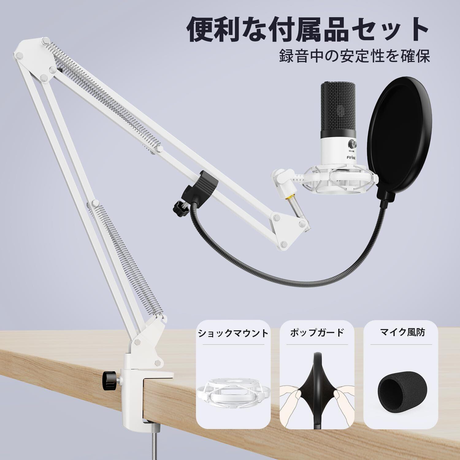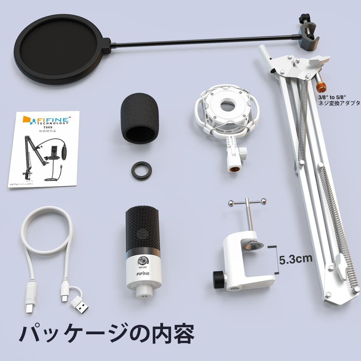 【在庫処分】FIFINE USBマイク コンデンサーマイク ゲーミングマイク 単一指向性 マイクアーム付き ポップガード付き 配信用マイク PC用マイク 高感度マイク マイクセット 録音 ゲーミング ライブ配信 ゲーム実況 在宅勤務 Windows/Mac/PS4/PS5対応 適格請求書発行可 白 T669W
