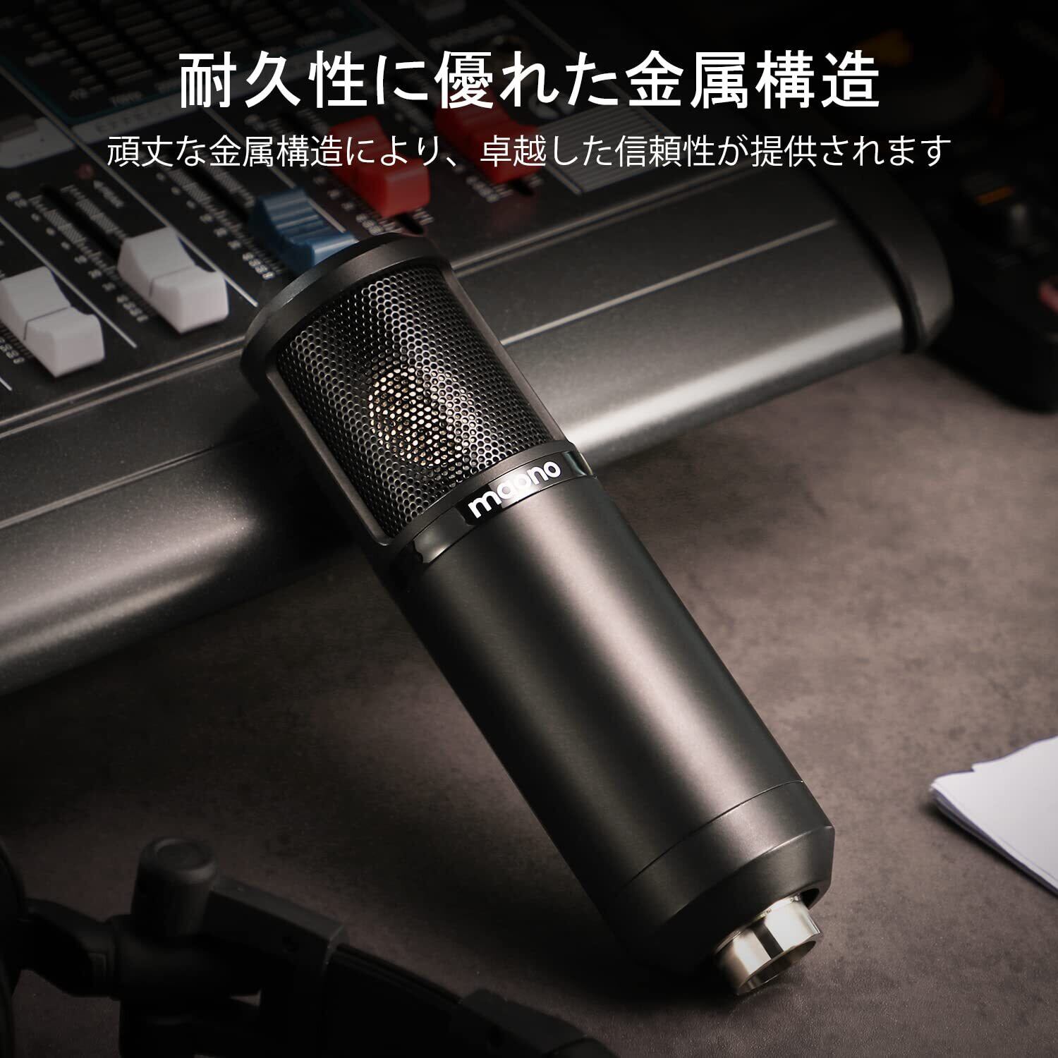 【プラグ&プレイ】XLR-3.5mmケーブルを採用して、高速・高音質の伝送が可能です。接続の操作はとても簡単で、繋ぐだけで使えます。マイクの筐体とマイクスタンドは精密な合金を採用して、ダイカスト製法で作られ、適度な重量感と確かな質感があります。安定性と耐久性も抜群です。マイクの高さ(最大7cm調整可能)と角度(最大 180°調整可能)は自由に調節可能なので、お好きな位置でご使用いただけます。