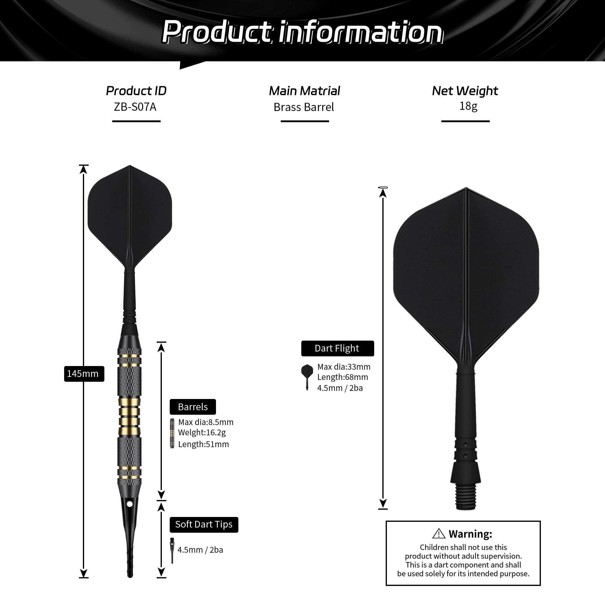 【特価処分】CyeeLifeダーツプラスティックチップ- プロソフトチップダーツセット18 g スーツケースと30個の追加ダーツチップ付き 電子ダーツボード用 (黒)