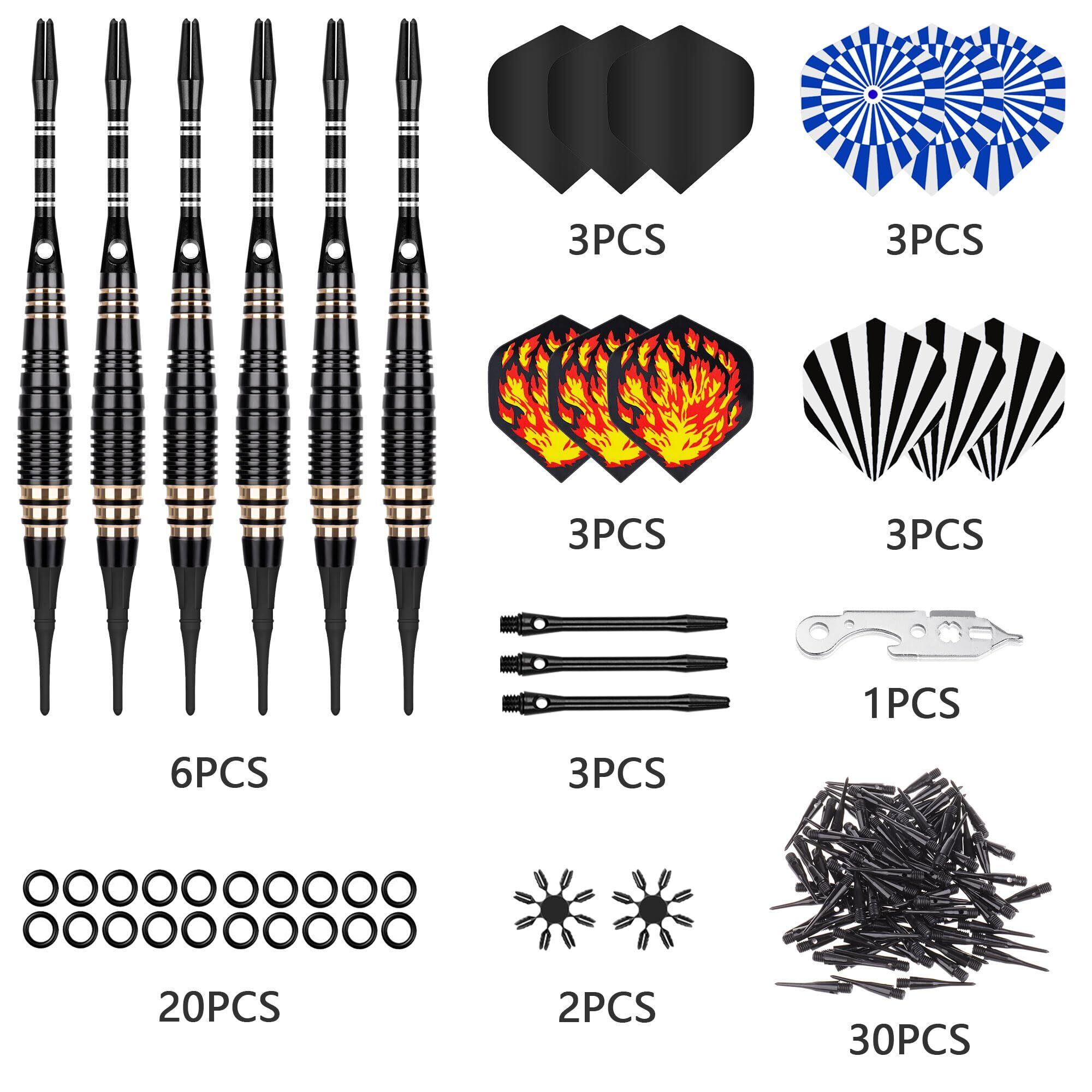 このダーツセットには、ゲームをシンプルにするために必要なものがすべて含まれています:6つの優雅なダーツ,12のユニークなデザインのフライト,9アルミニウム軸,50個のヒント,追加20個のOリング,2つのフライトプロテクターとスパナが、ダーツの完璧な形状を維持するのに役立ちます,プレゼント用ダーツボックス.