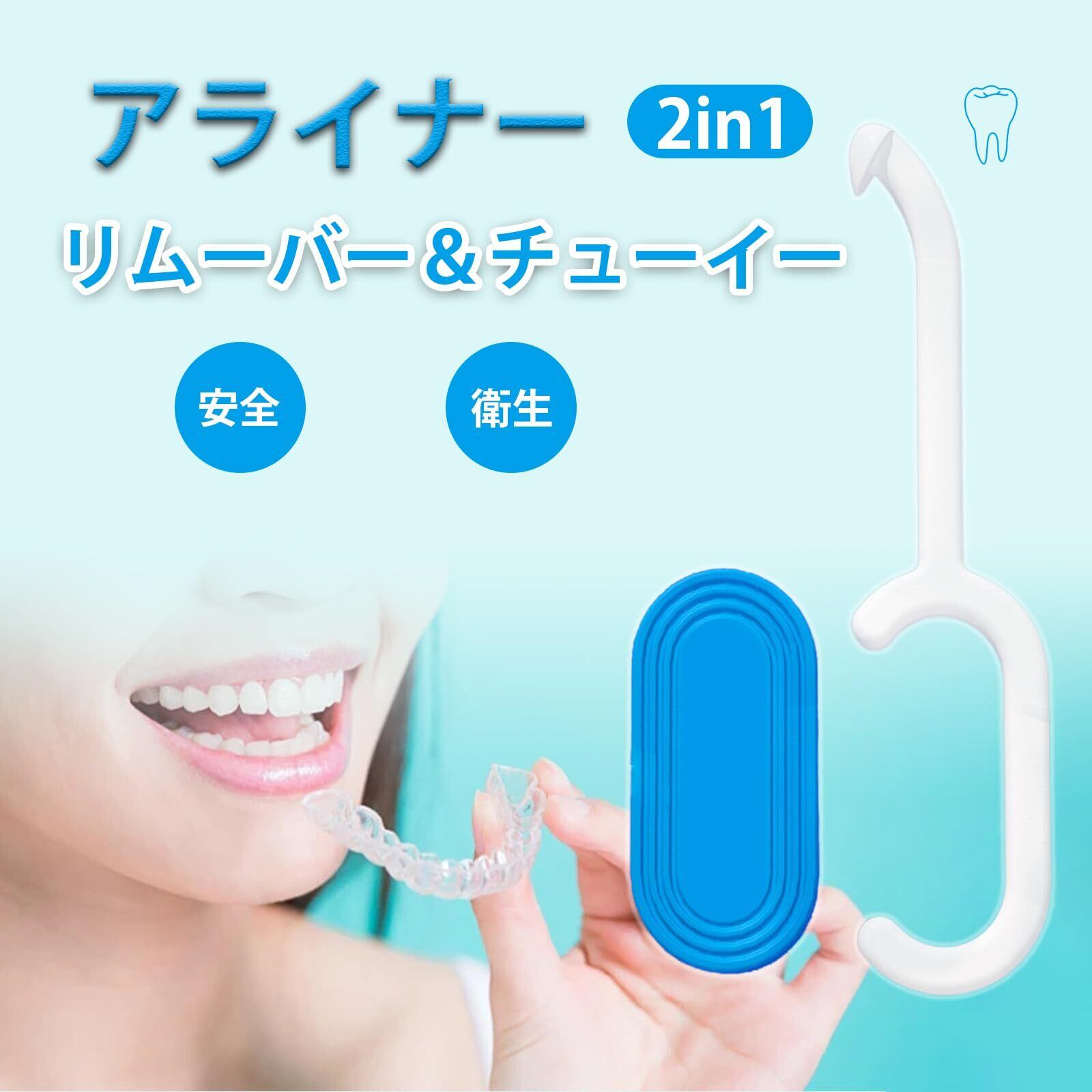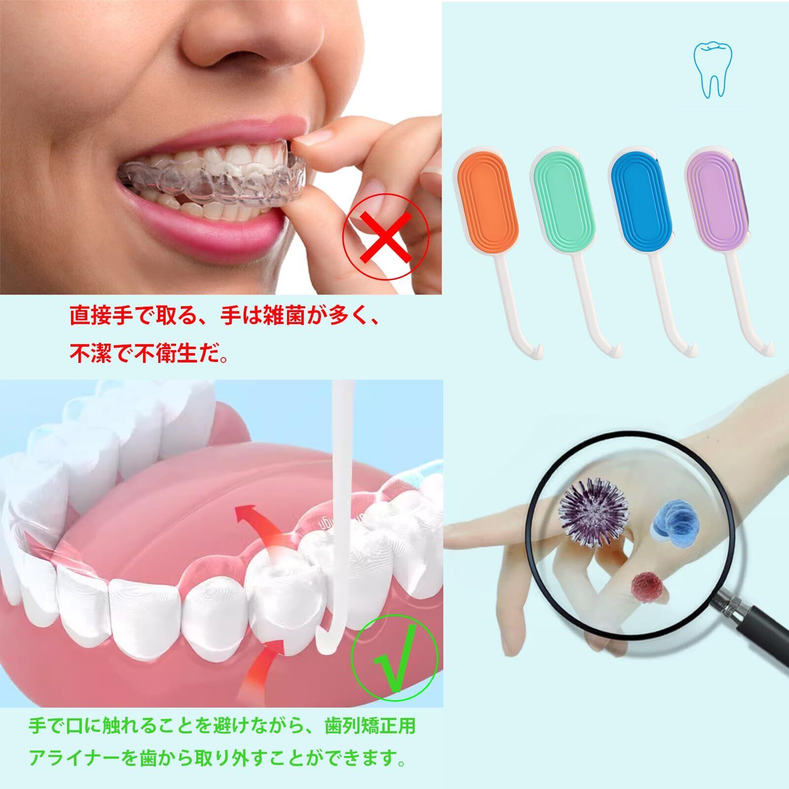 アライナーリムーバー チューイー 2in1 歯科矯正用フック 4色セット ブラシ付き ウスピース 取り外し器具
