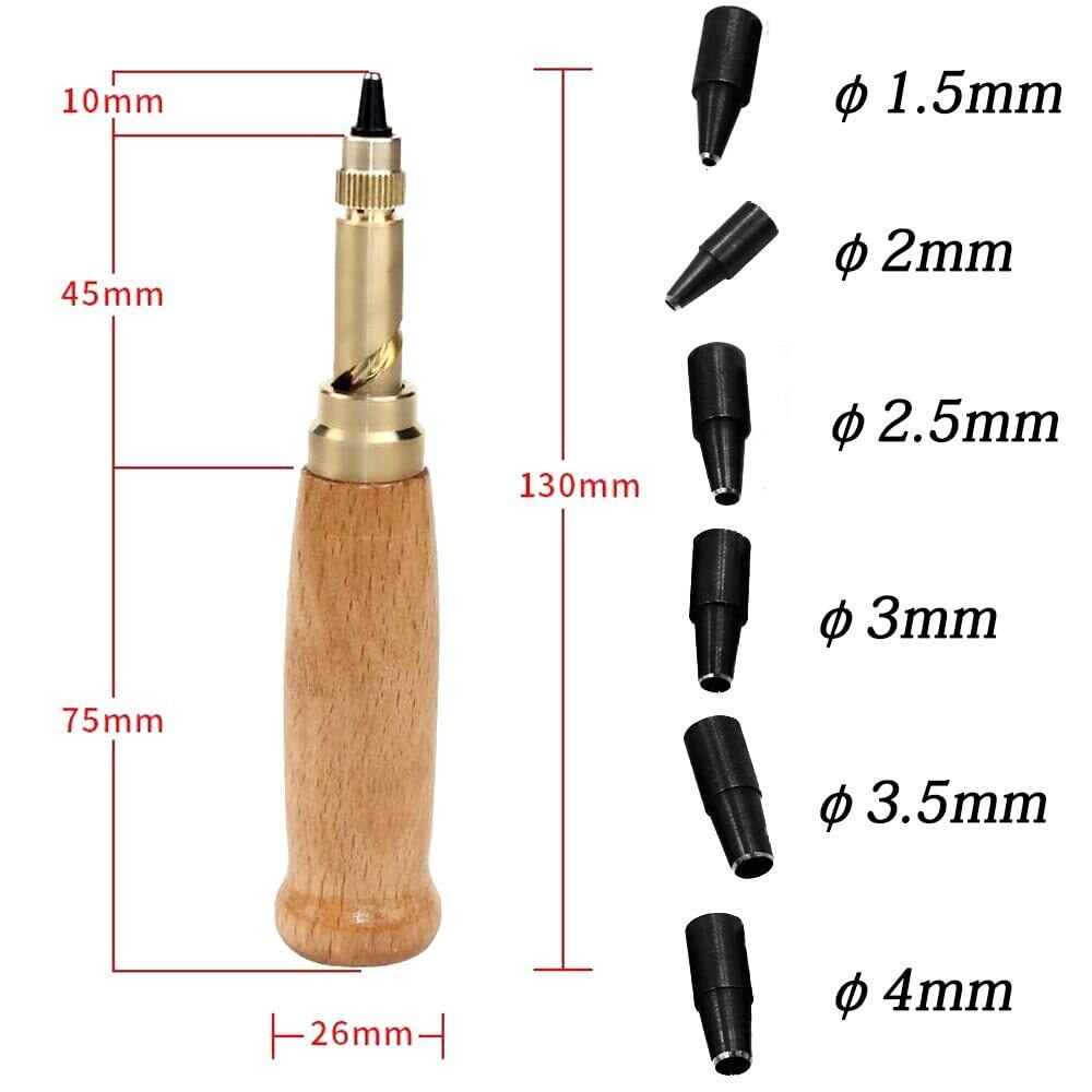 ベルト 穴あけ レザークラフト ベルト穴あけパンチ 革 穴あけ スクリュー 1.5/2/2.5/3/3.5/4mm ハンマー 不要 打音気にせず 穴あけ 工具 手つくり 道具 DIYレザーツール