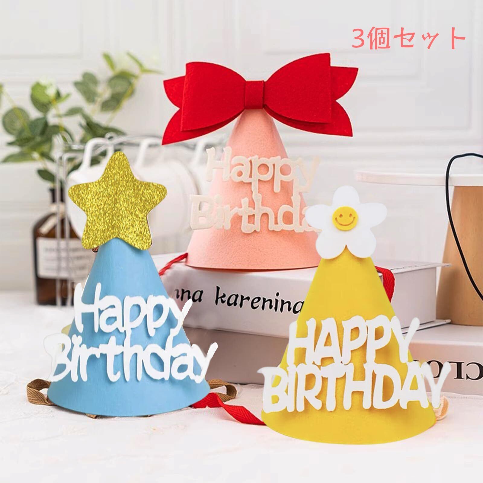 [] 誕生日 ハット 3個セット バースデーハット 三角帽子 Happy Birthday コーンハット お祝い 飾り 写真道具 バースデー パーティー小物 子供 大人兼用