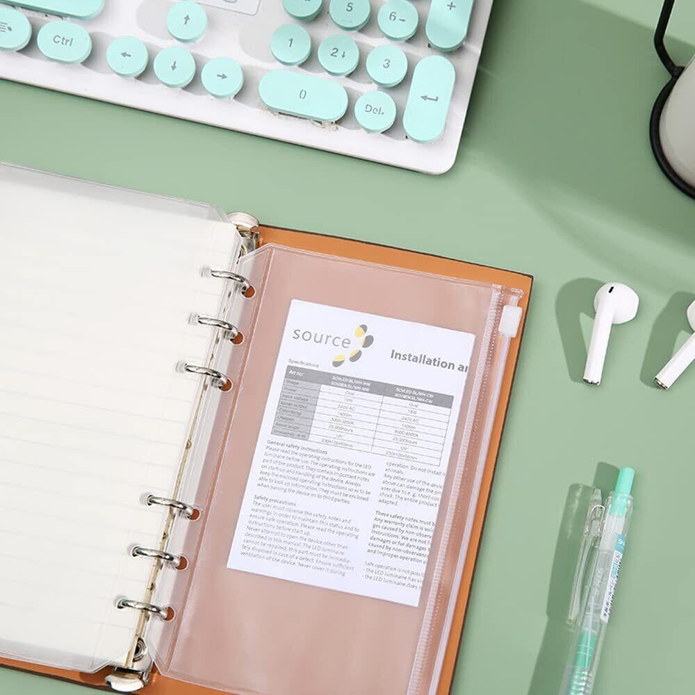 【製品内容】本製品をご購入いただくと、1ヶ月分のメモを完全に収納できるA6ノート・オーガナイザーが10冊届きます。 【3サイズ】①170mm*108mm,6冊②180mm*105mm,2冊③180mm*105mm,ダブルストレージ 2冊。 【ファスナーポケット】ジップポケットが6つセットになっており、ジップには便利な引き手がついているので、スムーズに開閉でき、中身が落ちる心配もなく収納することができます。 レシートやスタンプ、シール、付箋などの小物など、ノートと一緒に使いたいものをすっきり収納できます。 【4枚防水タイプクリアポケット】チケットの大きさを2段階に分けたノート用リフィル2枚付き。 中身の落下や汚れ、水濡れを防止するカバー付き。 【PP素材】PP製で、防水性、耐久性、防汚性に優れているので、水に濡れたり、傷んだりすることがありません。 見た目は半透明で、中に入れたものが見やすくなります。 チケットの整理整頓ができます。