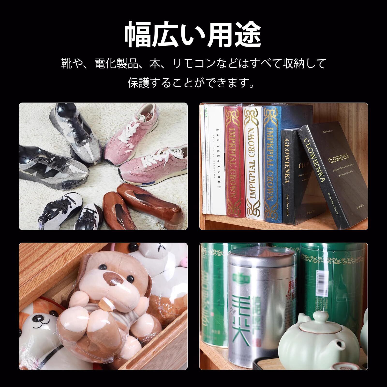【幅広い用途】さまざまなタイプの物品に使用可能。遥控器や靴、コレクション、ギフトなどを包装するのに最適。家庭用やビジネス用途におすすめ。