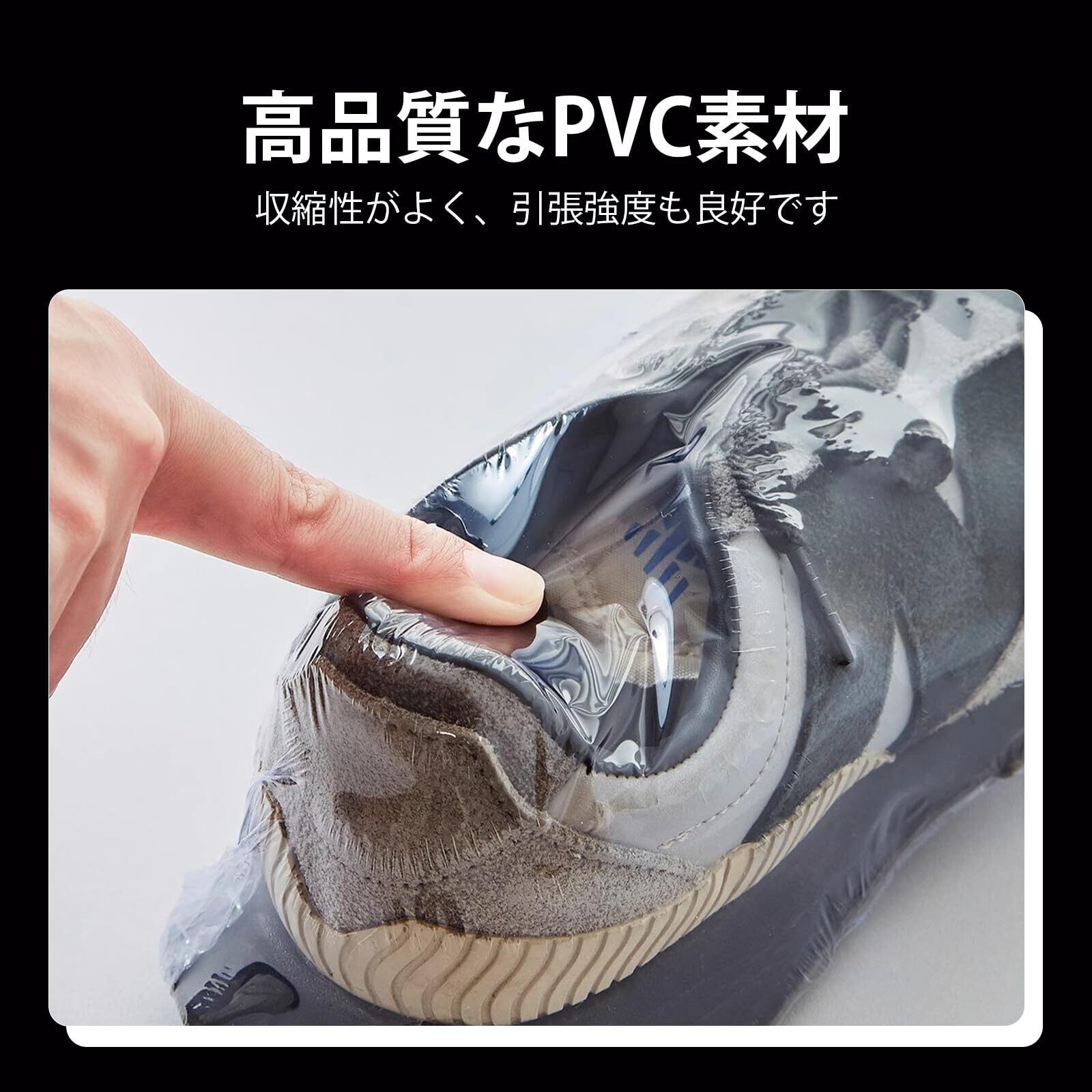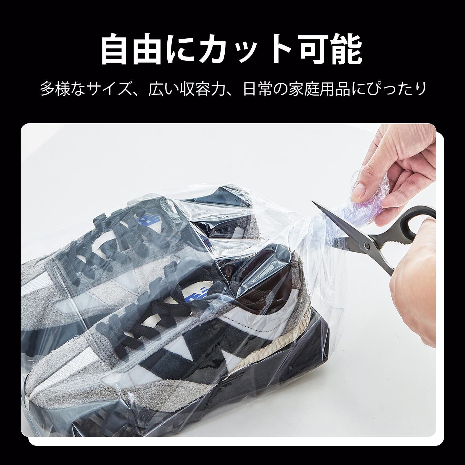 【機能】運動靴を灰?や湿気から守るための熱収縮袋。物品と密着し、美しい見栄えに。