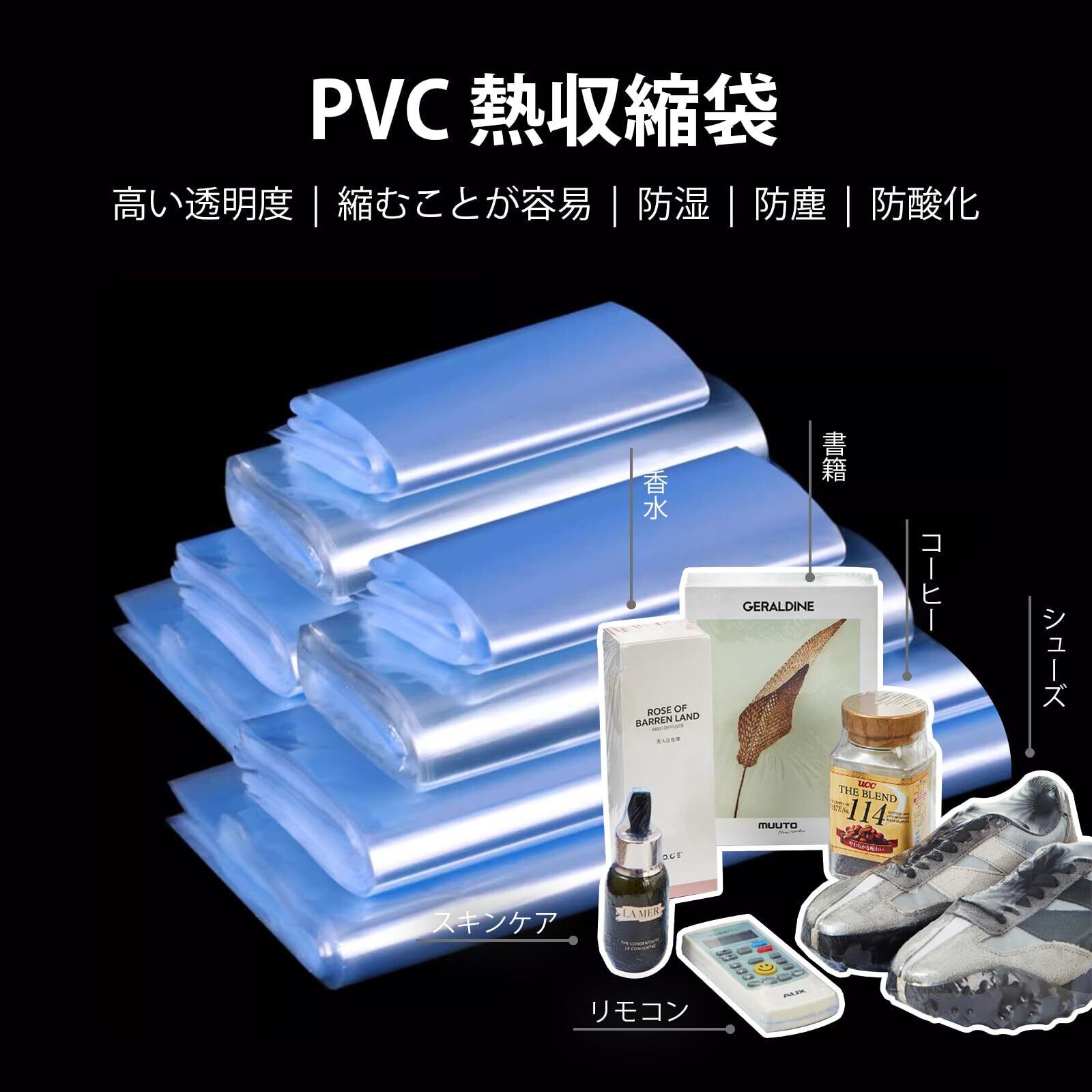 【素材】加熱すると収縮する高品質なPVC素材を使用しており、収縮性がよく、引張強度も良好です。防水性・防塵性も高いので、長期保管にも最適です。