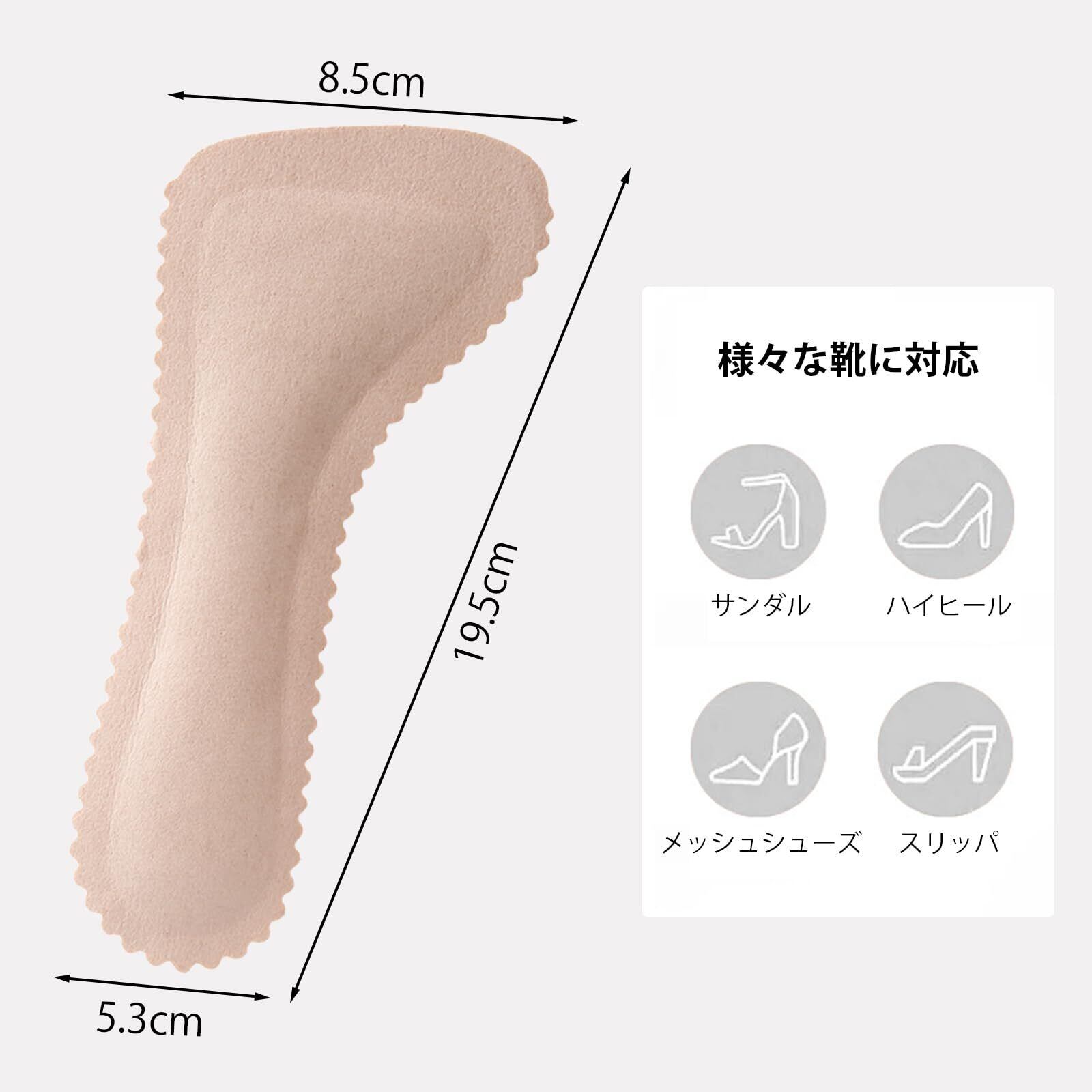 ハイヒールの履き心地を改善するインソールです。衝撃を吸収し、足の疲労を軽減します。滑り止め加工で靴の中での足のズレを防ぎ、通気性と吸汗性に優れているので、蒸れを防ぎ快適な履き心地が持続します。2色4枚入りで2足分のインソールがセットになっています。レディースサイズで、パンプスやハイヒールに最適です。長時間の歩行や立ち仕事でも、足への負担を軽減してくれます。洗濯可能で衛生的に使えます。靴の中敷きを交換するだけで、疲れにくく快適な歩行が実現できます。