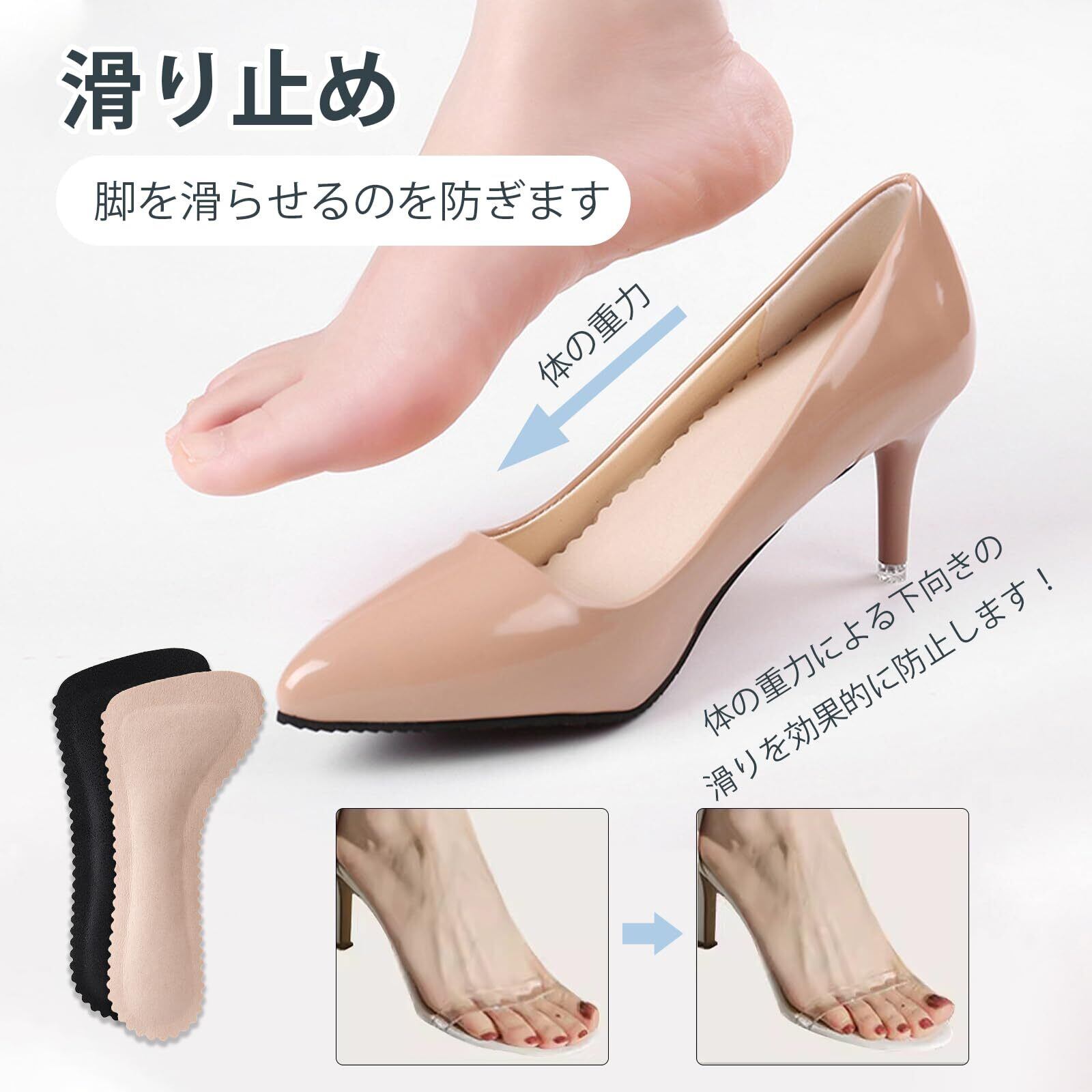 ハイヒール インソール 2色 4枚 2足セット 中敷き 滑り止め 通気 吸汗 衝撃吸収 レディース なかじき 靴 パンプス インソール (ブラックとベージュ 2足セット, L)