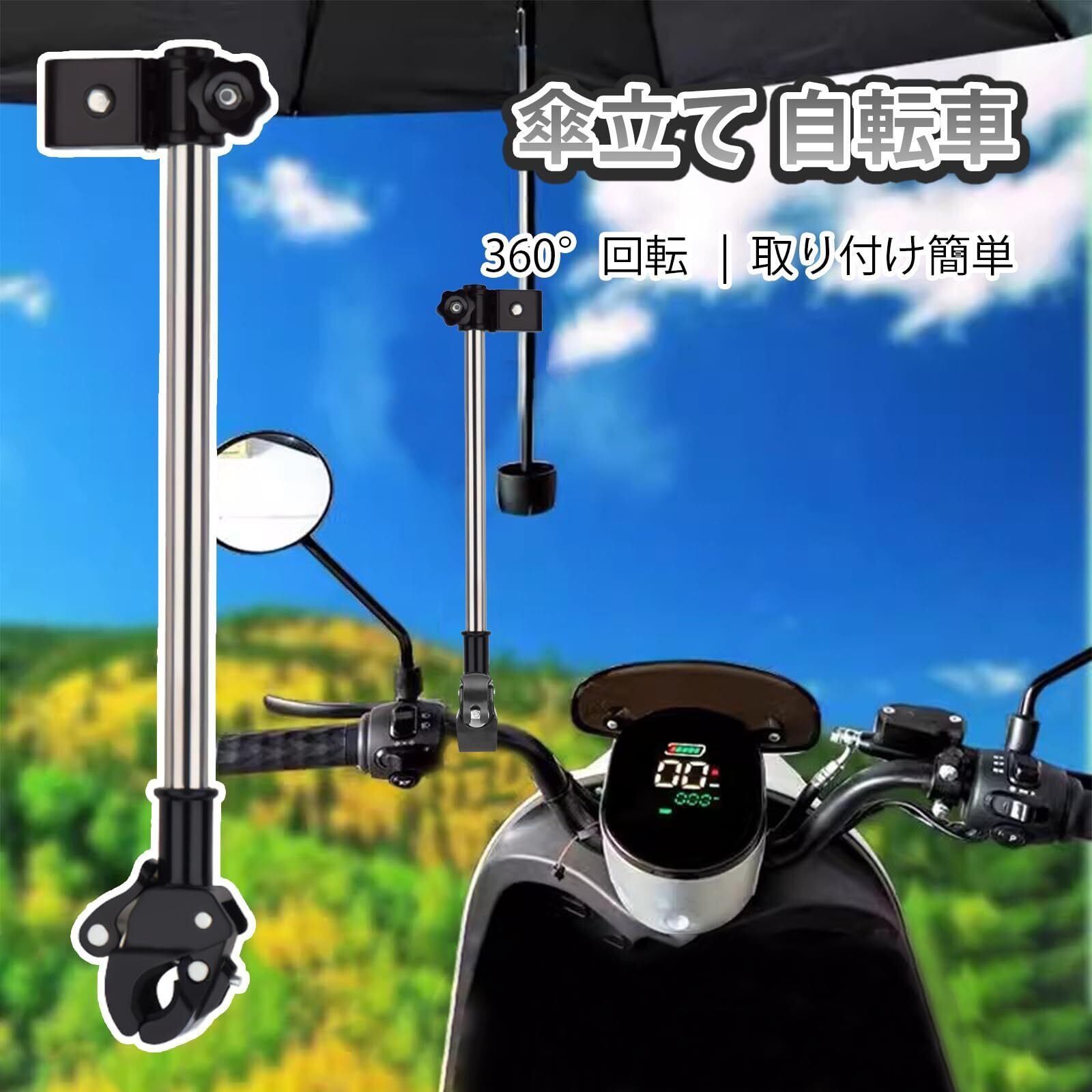 傘立て 自転車 自転車傘ホルダー 傘の固定 360°回転 高さ調節可能 取り付け簡単 自転車 電動自転車 ベビーカー オートバイ 雨 日除け 通勤通学