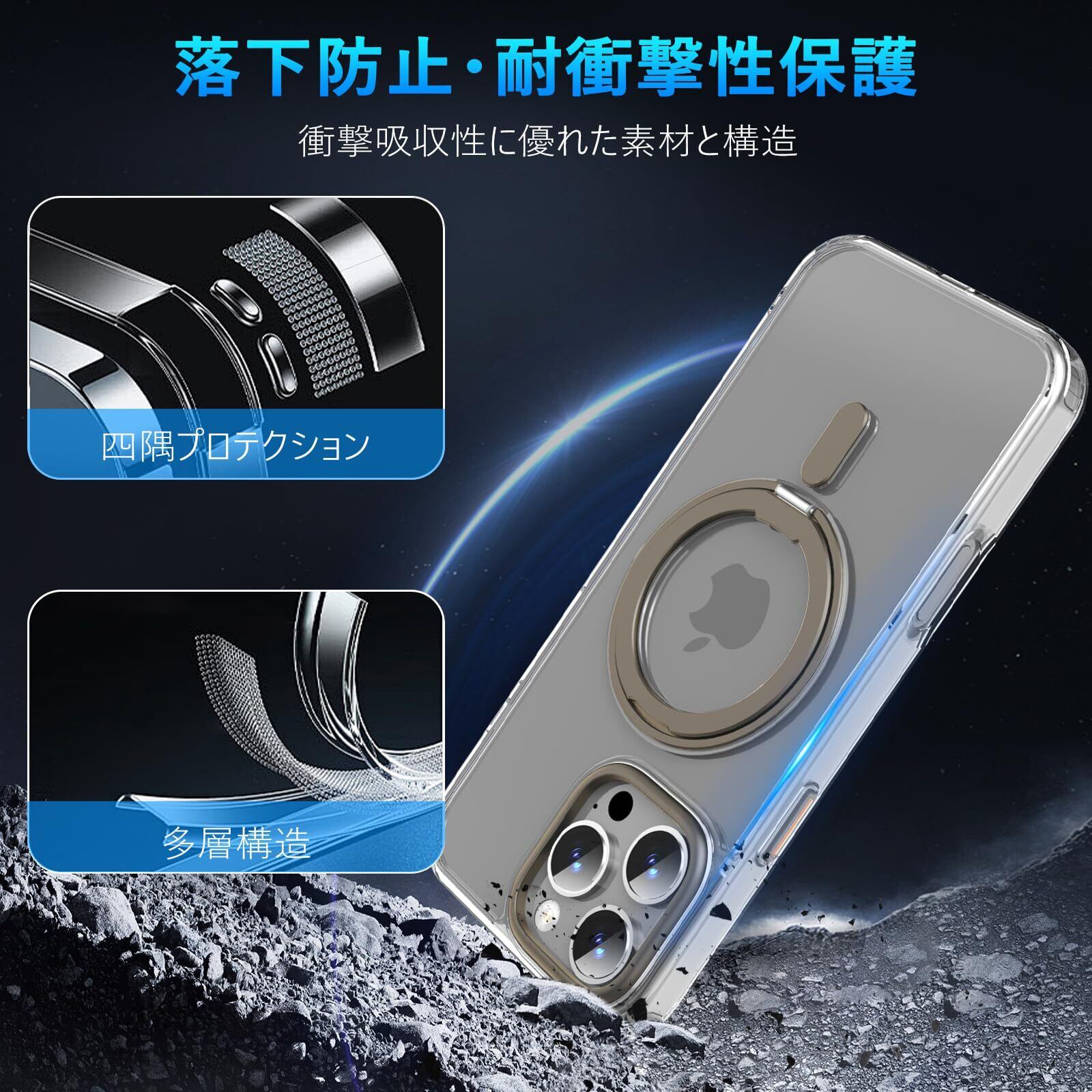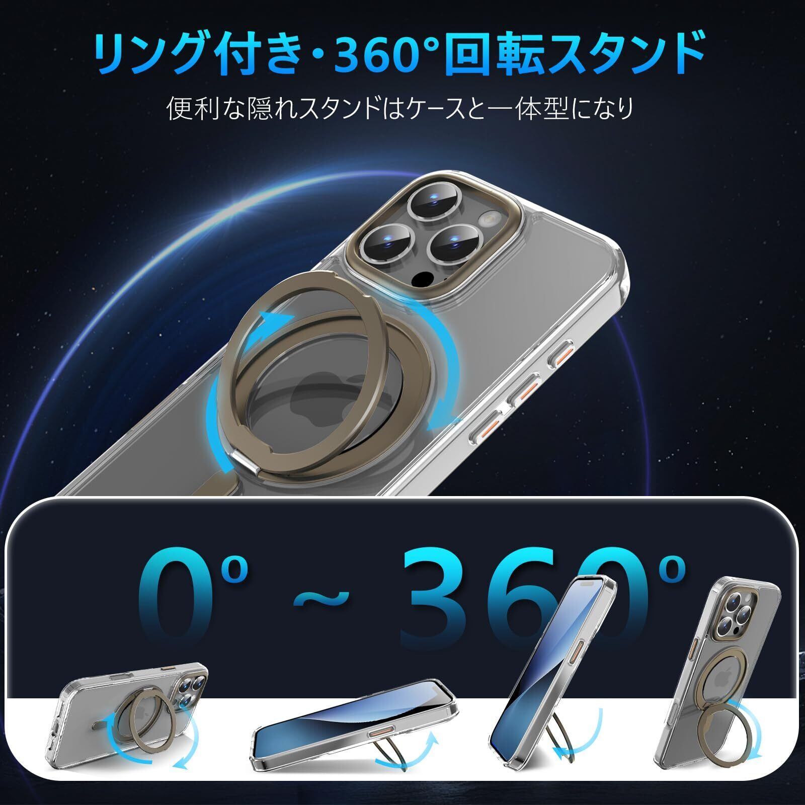 特徴 360°自由回転スタンド/耐衝撃性抜群/Magsafe対応/リング付き/肌触り良い/全面保護/防塵