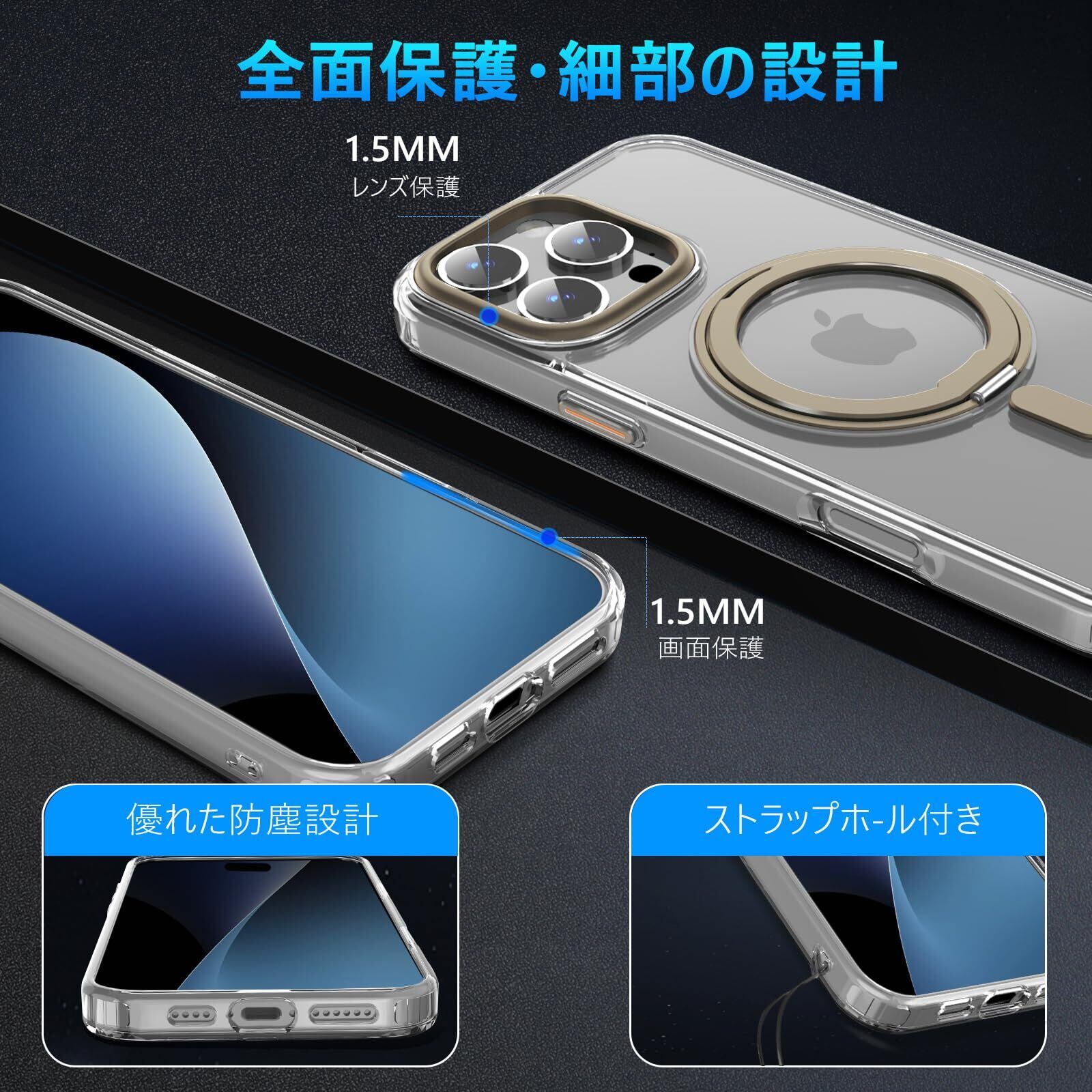 【新着特価】【iPhone 16Pro 用 MagSafe対応 ケース】360°回転スタンド ワイヤレス充電対応 iphone 16 pro 用 ケース リング付き 米軍MIL規格 いphone16pro 用 ケース 超強磁力 落下防止iphone16pro 用 ケース 耐衝撃 アイフォン16pro 用 ケース 半透明 防指紋(透明+デザートチタニウム)