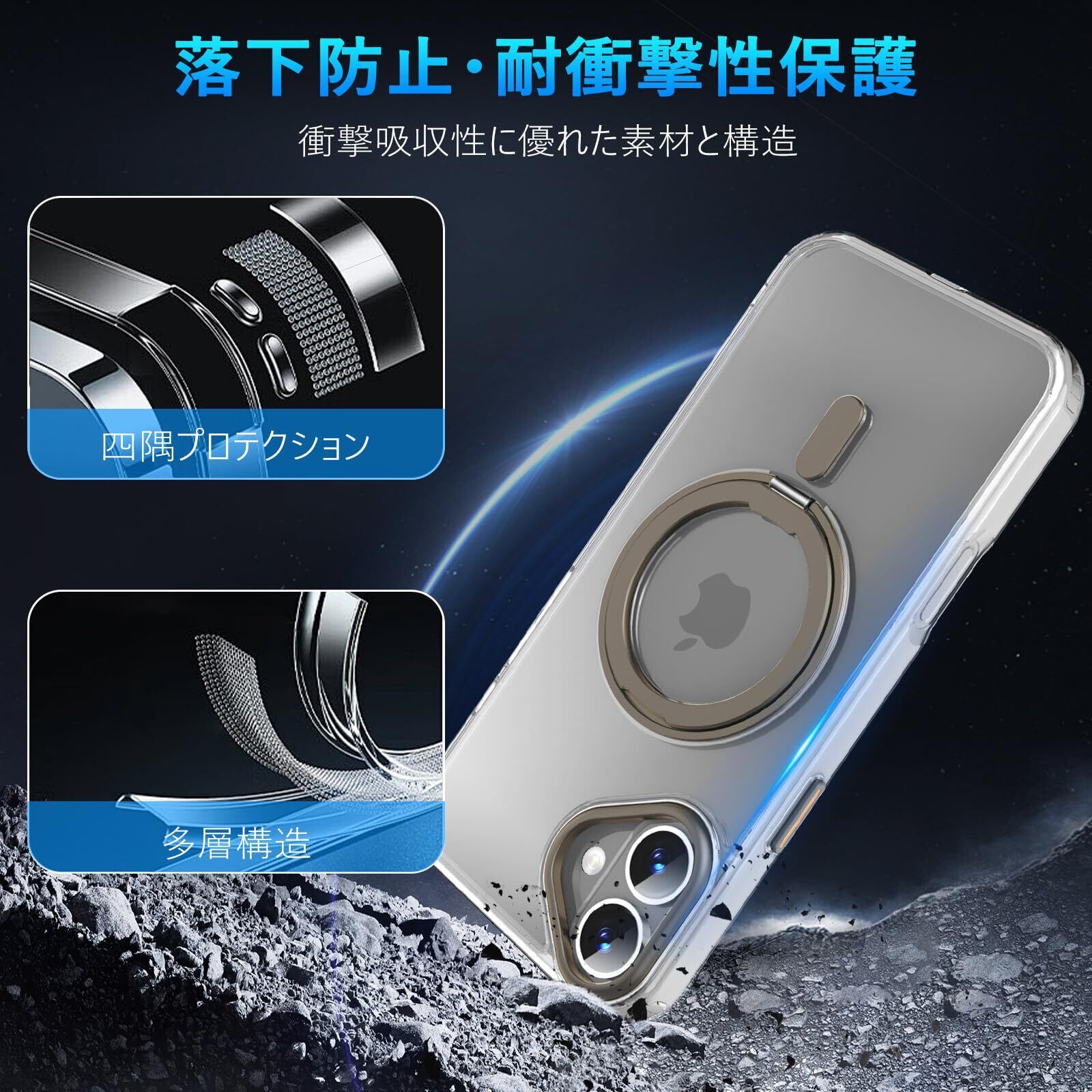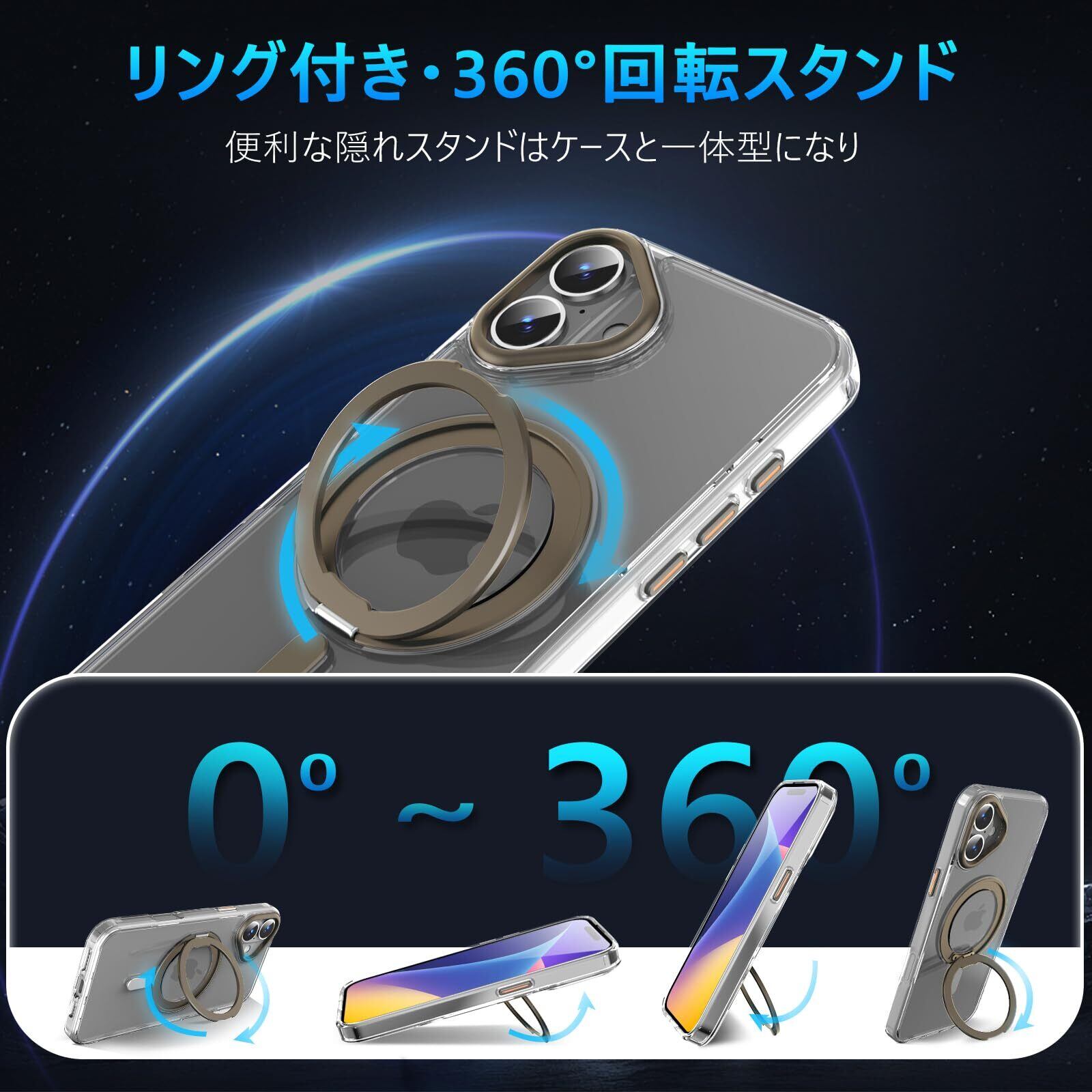 特徴 360°自由回転スタンド/耐衝撃性抜群/Magsafe対応/リング付き/肌触り良い/全面保護/防塵