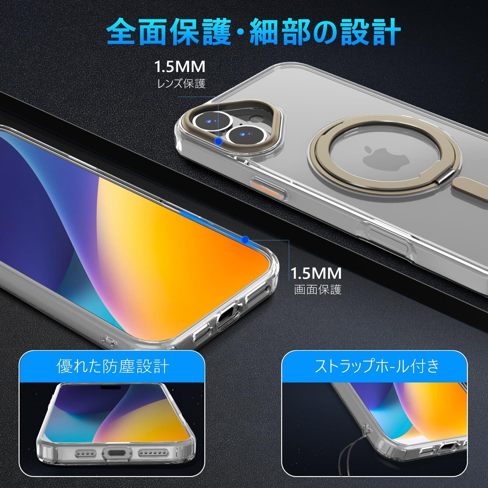 【努力特価】【iPhone 16 用 MagSafe対応 ケース】360°回転スタンド ワイヤレス充電対応 iphone16 用 ケース リング付き 米軍MIL規格 iphone 16 用 ケース magsafe対応 超強磁力 落下防止 アイフォン16 用 ケース 耐衝撃 iphone16 用 ケース 半透明 防指紋(透明+デザートチタニウム)