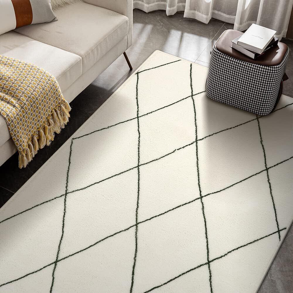 HAOCOO カーペット ラグ ラグマット 約1畳 北欧 アンティーク 幾何学柄 ふわふわ 滑り止め ホットカーペット対応 防音 洗濯可能 オールシーズン適用 リビング ダイニング (90х150cm,アイボリー)