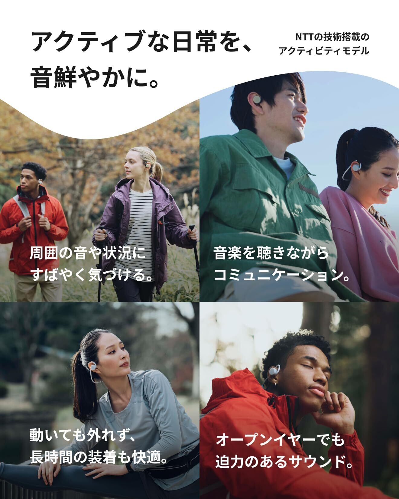 NTTの技術搭載、耳をふさがないイヤホン「耳スピ」|オープンイヤーだから、周囲の環境音や人の声が聞こえて、安心してアクティビティが可能。さらにNTT独自のPSZ技術を搭載し音漏れを抑制し、場所を選ばない。耳をふさがない、耳スピーカー「耳スピ」。