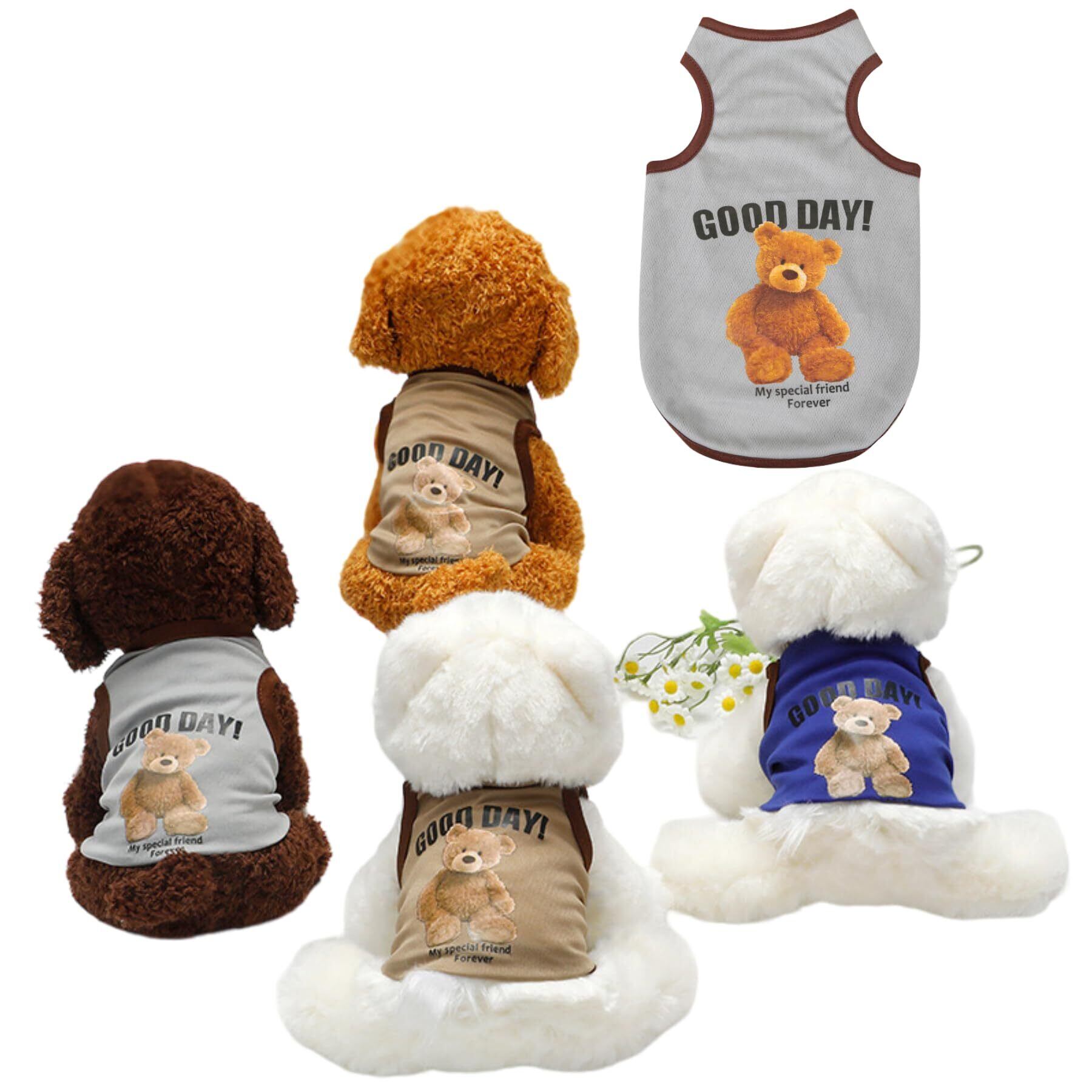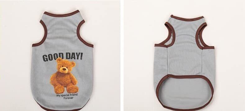 【新着特価】RIOSTUDIO 犬服 春 夏 犬の服 夏用 タンクトップ 涼しい くまちゃん柄 通気メッシュベスト 熊ちゃんプリント ノースリーブベスト わんこ服 小型犬 中型犬 大型犬 猫服(⑥グレーXL)