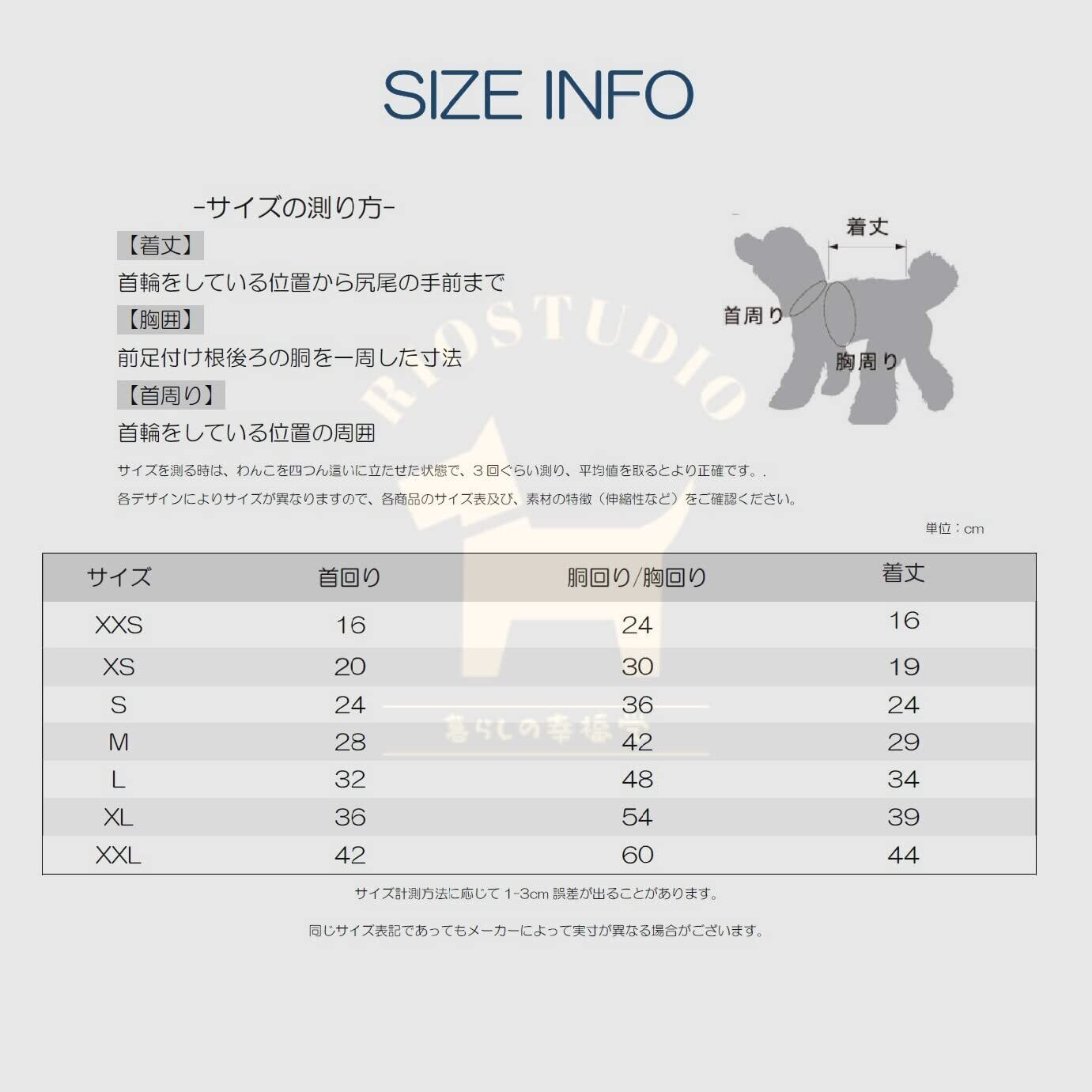 ※こちらの商品は海外輸入品につき、日本国内店頭に置いております商品品質基準と異なる場合がございます。例:裁縫の甘さや小さい穴、梱包時のしわ、接着面のずれやプリントのずれ、多少のほつれやしみ、製品加工工程による匂い、ボタンの取付の甘さ、タグが逆・タグがない、インク飛、裁縫時につけた印(チャコペン)が残っている。※実際の商品に近い色を再現しておりますが、お客様の御覧になっているモニターの色の違いにより実際の商品と色味が異なる場合がございます。ご了承ください。※RIOSTUDIOは安くてより良い品質の商品を目指して、海外のから商品を厳選しております。あなたの愛犬ちゃんもアイドルになれますので、ぜひチャレンジしてみてください。