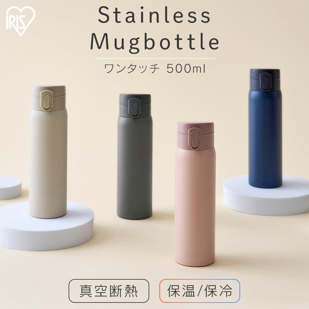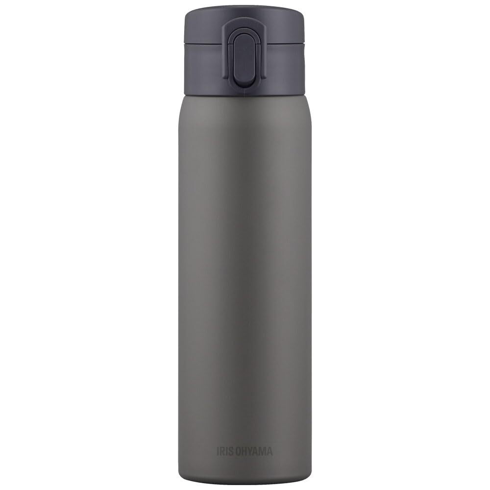 アイリスオーヤマ 水筒 500ml 真空断熱6時間キープ 片手で開け飲みしやすいワンタッチ オフィスで使いやすい 直飲み 丸洗い出来てお手入れラクラク ステンレスマグボトル SKB-O500 グレー