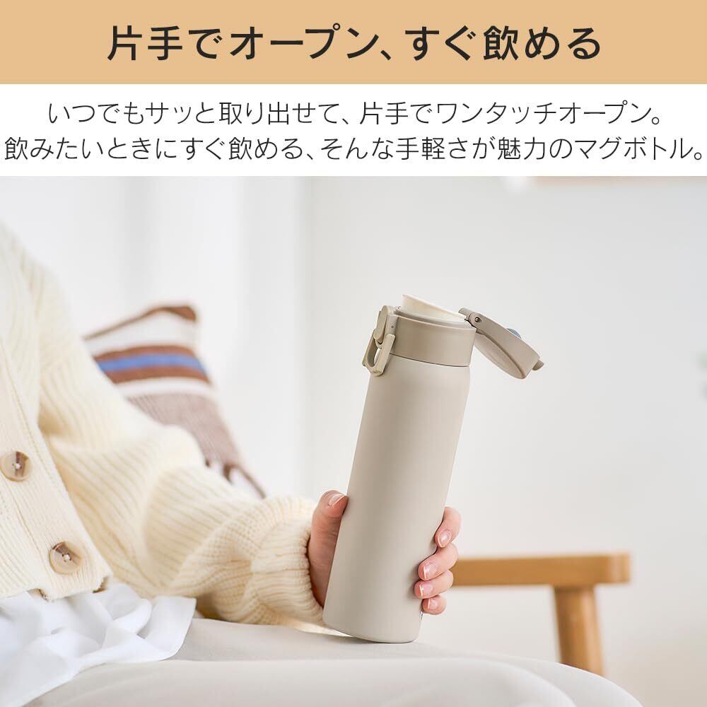 ロックを外してボタンを押すだけ、片手で開けられます。いつでもサッと取り出せて飲みたい時にすぐ飲める、そんな手軽さが魅力のマグボトル。