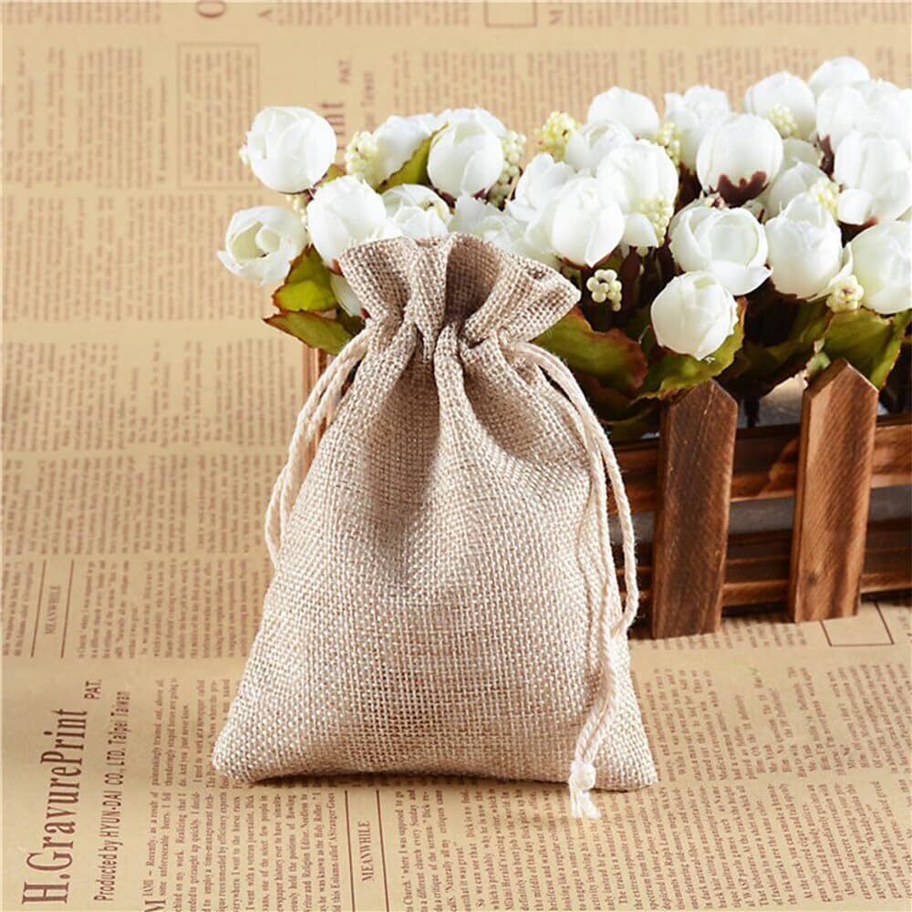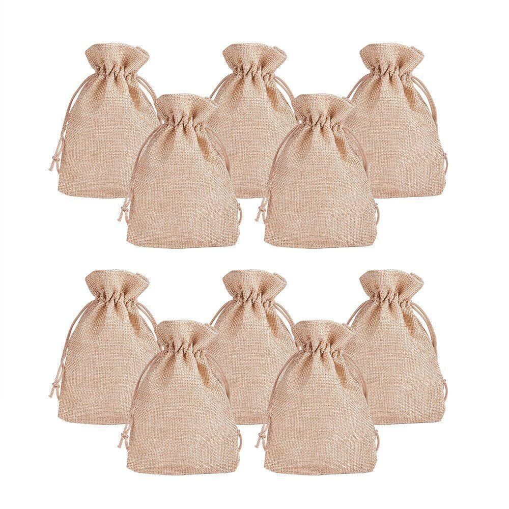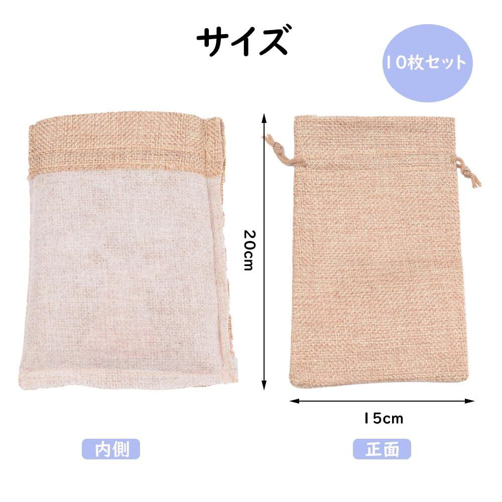 サムコス 巾着袋 麻袋 10枚セット 亜麻袋 小物入れ ジュエリーポーチ 収納バッグ ギフトバッグ 誕生日 結婚式のお返しバッグ ラッピング袋 ラッピング用 (あまいろ, 15*20cm)