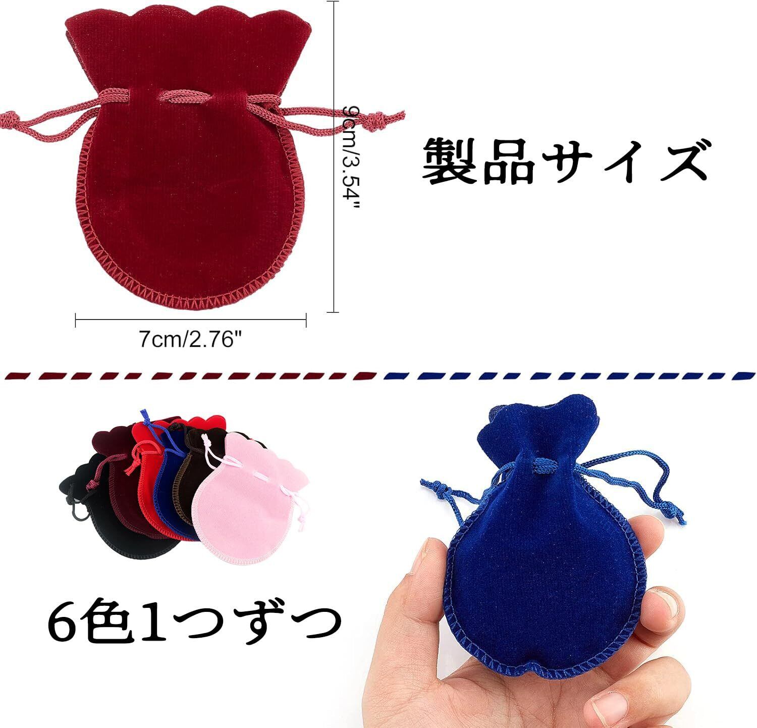 【在庫処分】ChasCoCo 6色 ベルベット ベロア調 巾着袋 ベロア調 6枚入り ジュエリーポーチ アクセサリー保存 多機能 ギフトバッグ 小物入れ ラッピング プレゼント用収納袋 DIY手作り素材