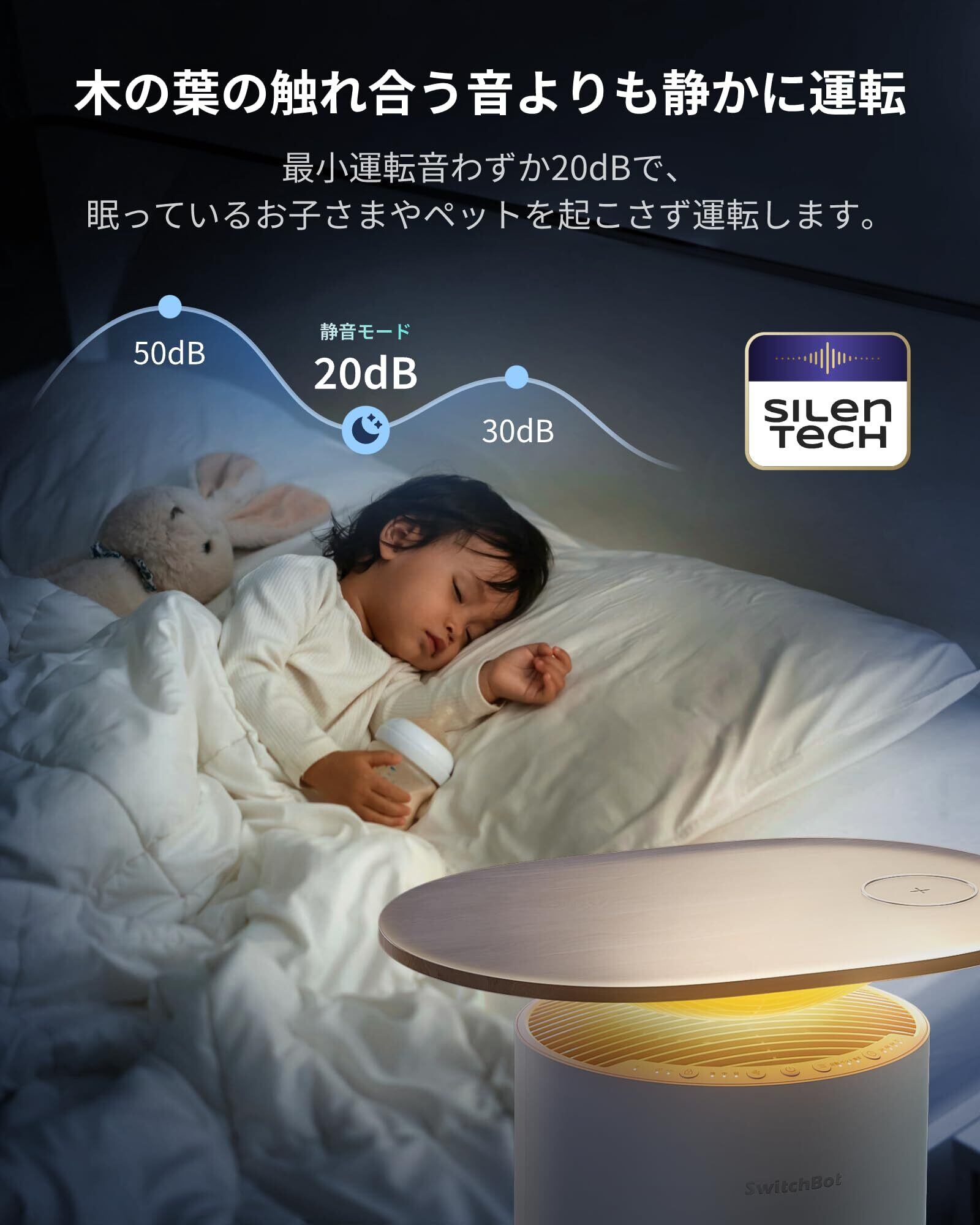 【1台4役】SwitchBot 空気清浄機 Table 脱臭 ワイヤレス充電 - スイッチボット 25畳 静音 小型 省エネ 大風量 360度全方位 浄化 消臭 除菌 集じん HEPA フィルター 花粉 ニオイ対策 タイマー機能 ムードライト付き Alexa Google Home Siriに対応