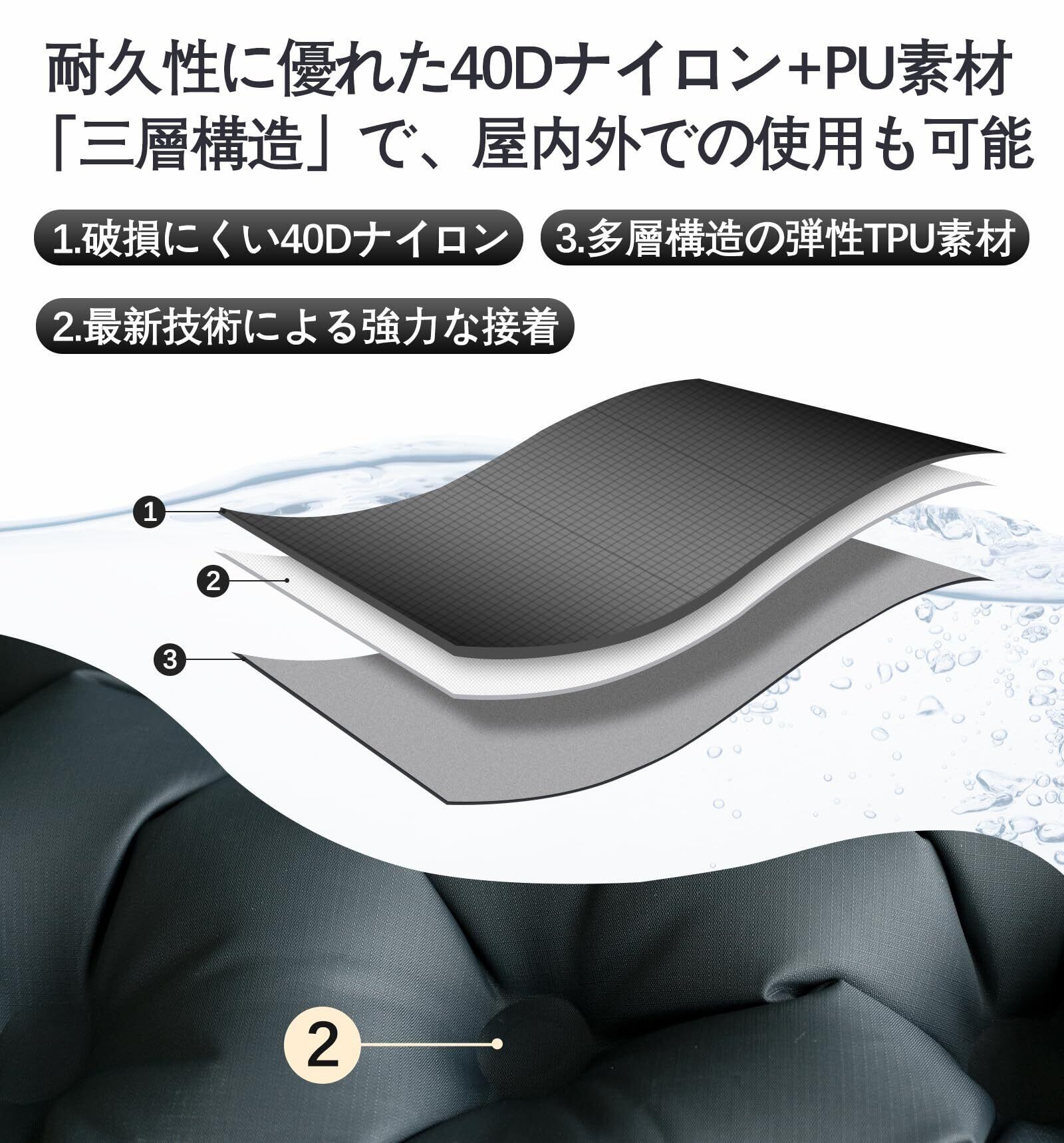 【約170Gと超軽量エアータイプ】収納ケースが空気ポンプに早変わり!手でポンプを押すだけで簡単に膨らむ。耐久性あるナイロン素材で、屋内外での使用も可能にしました!キズ・衝撃に強く、柔軟性に優れたレジャーマットは、湿気や冷気を遮断します。