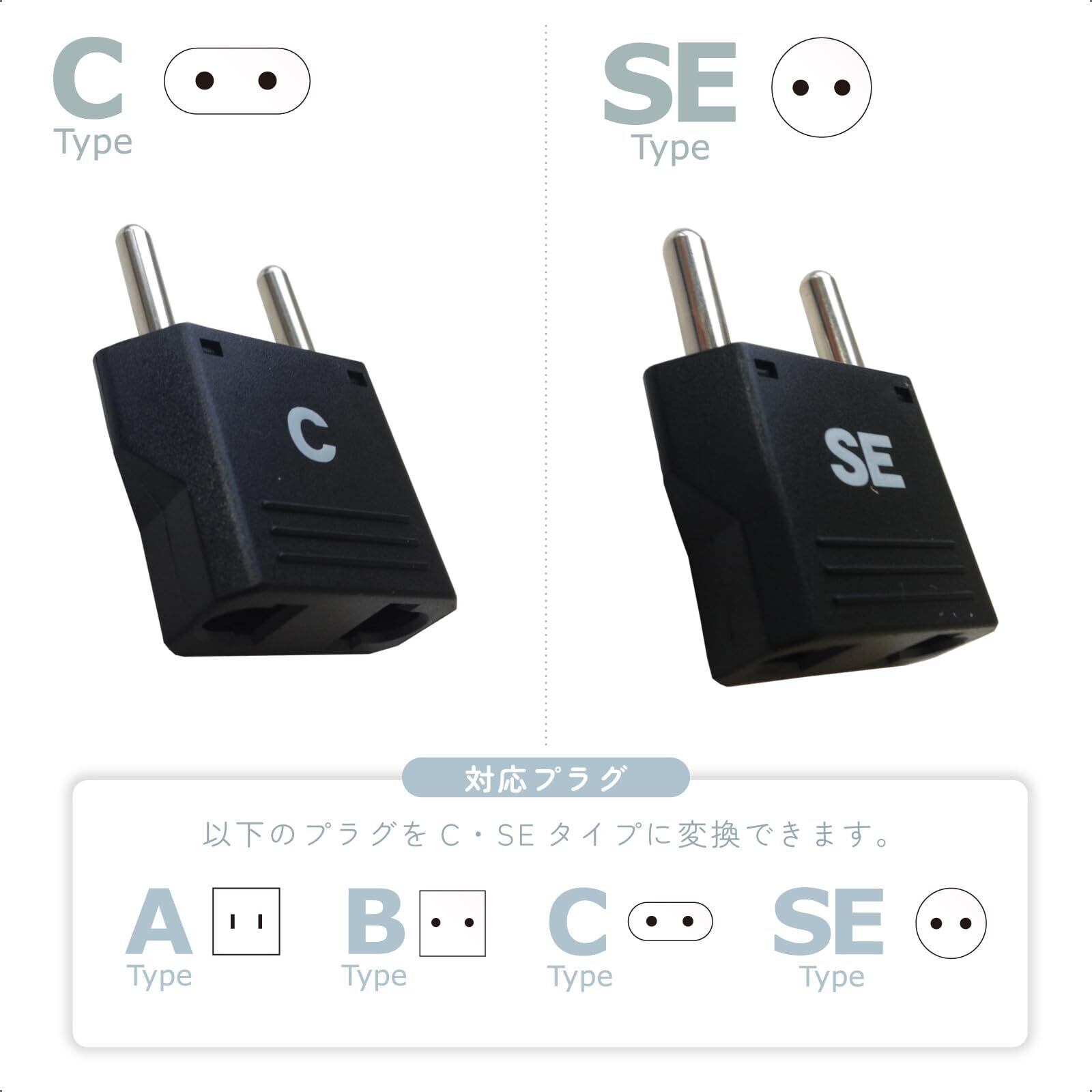 4種類のプラグ(ABCSE)をC&SEタイプに変換できる海外旅行用マルチ変換プラグ!