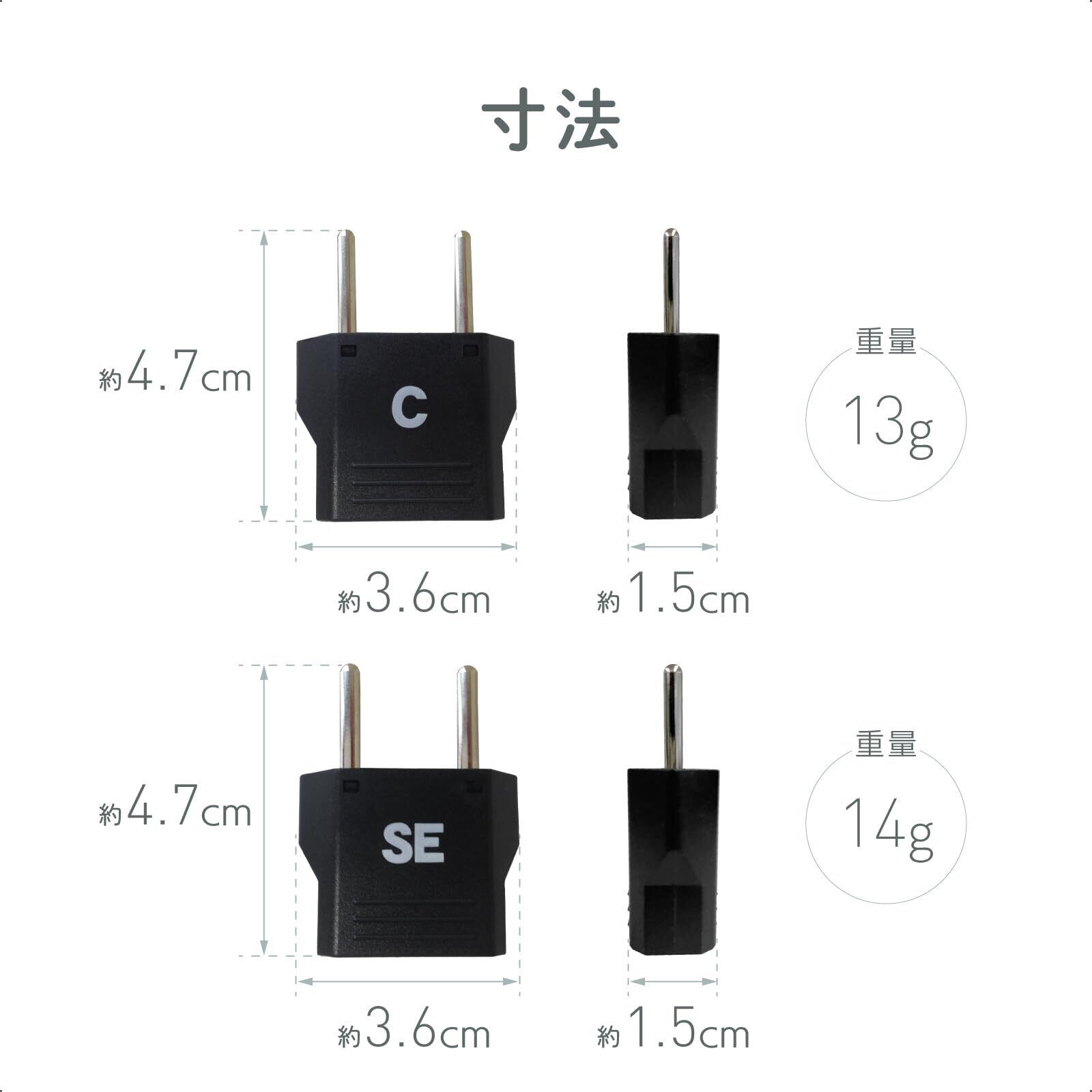 ・それぞれ3種類のプラグ形状を変換することができます。