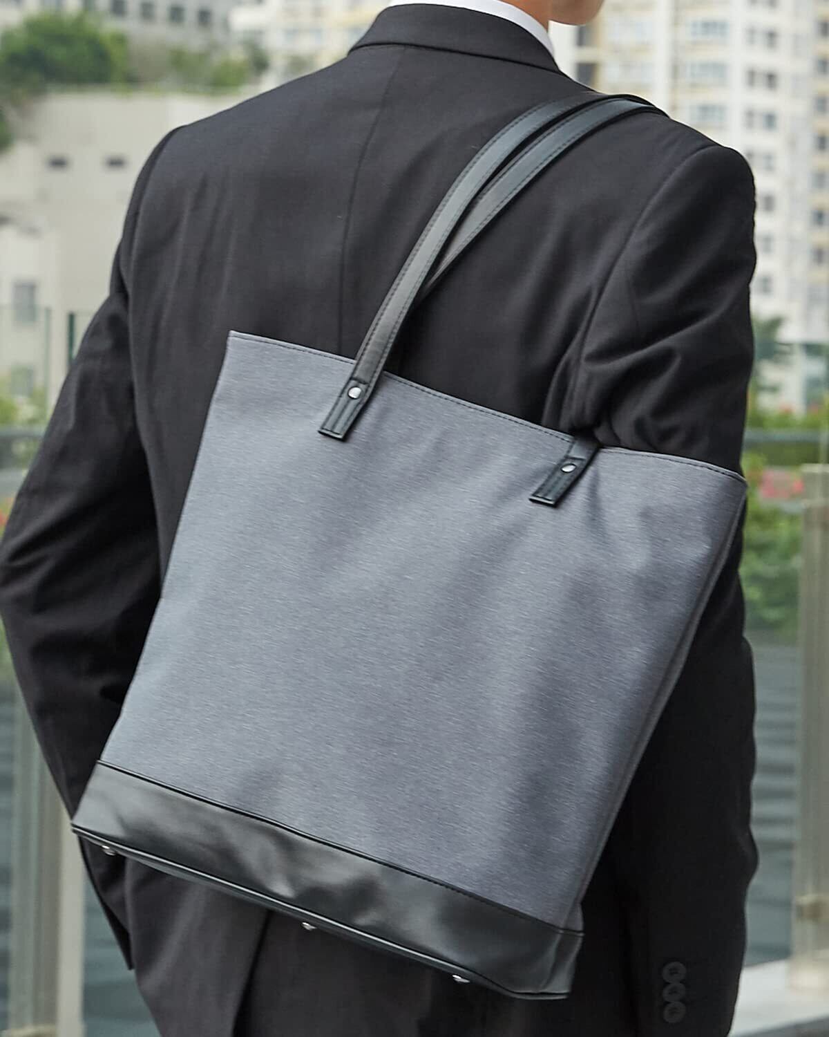 [オン&オフ兼用・機能性・ビジネストート]見た目はもちろんのことながら、重視したいのがその機能性。カジュアルに見られがちなトートバッグながらも高級感溢れる質感も持ち合わせたシンプルなデザイン。あらゆるビジネスグッズをスマートに持ち運び可能で、耐久性も抜群という高機能が自慢。いつでも万全な体制で戦い抜く。デキル男の相棒となるトートバッグです。