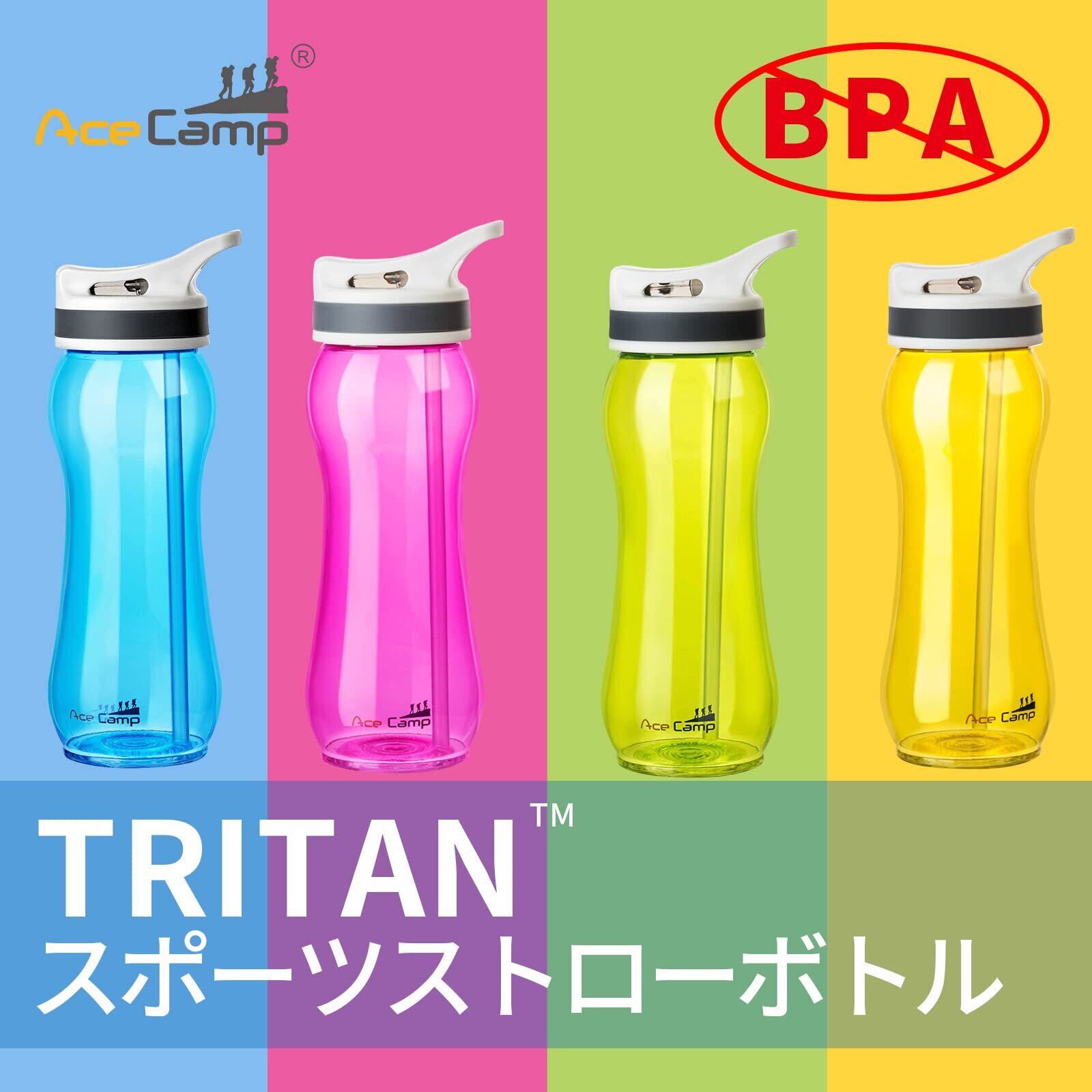 AceCamp ストローボトル 米国のトライタン材料 BPAフリー 女性向き スポーツ 水筒 600ml、赤